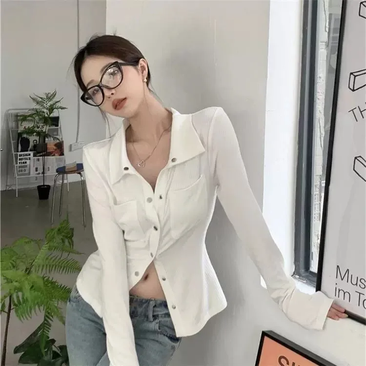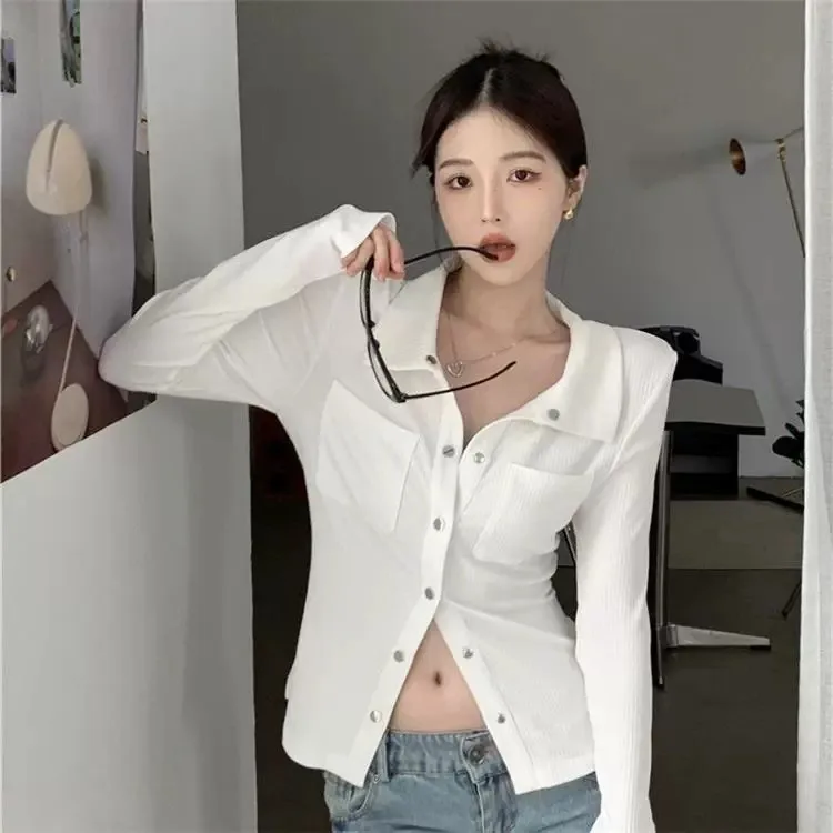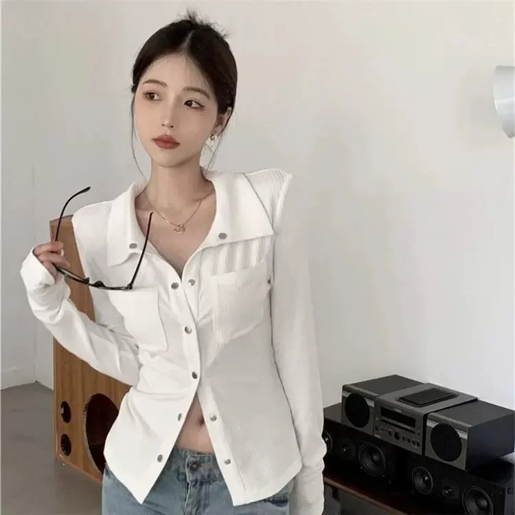 Featuring a classic polo collar and long sleeves, this T-shirt offers a stylish and sophisticated look, perfect for the modern woman.