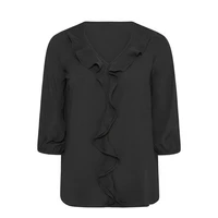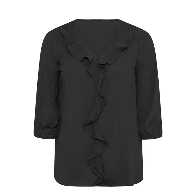 Details:3/4 length balloon sleeves,Frill front detail,V-neckline,Curved hemline