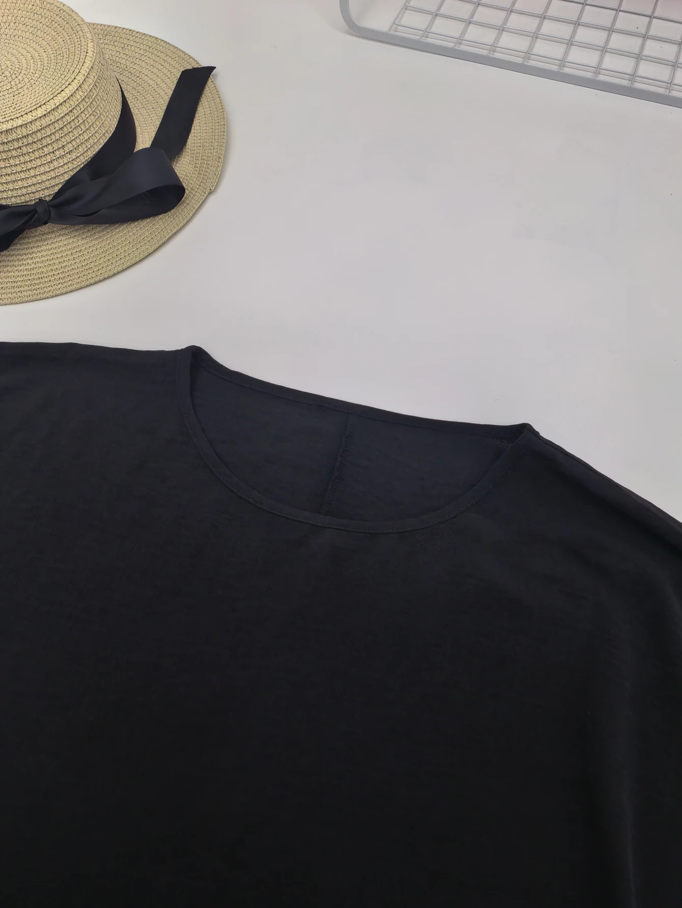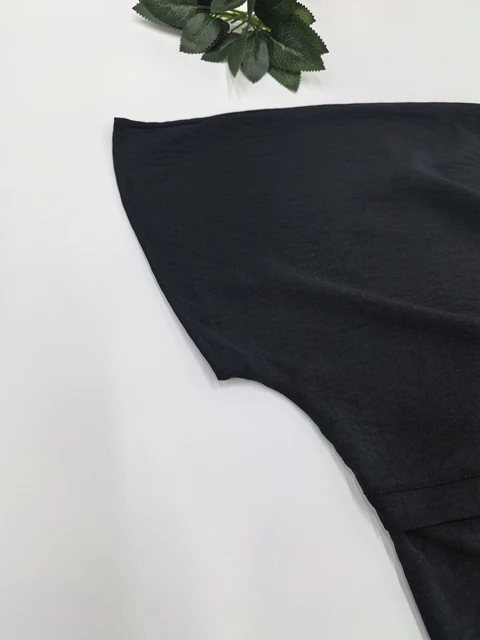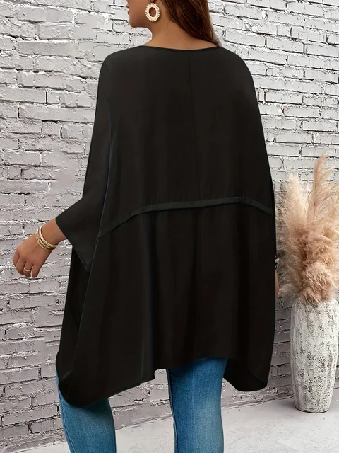 Plus size solid color black female round neck bat wing sleeves loose shirt waterfall top