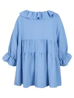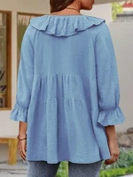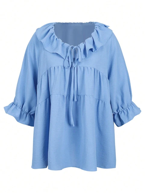 Plus Size Solid Color Ruffle Sleeve V-Neck Top 2025 Autumn and Winter New Long Sleeve Fashion Tie Tops Autumn Best Choice