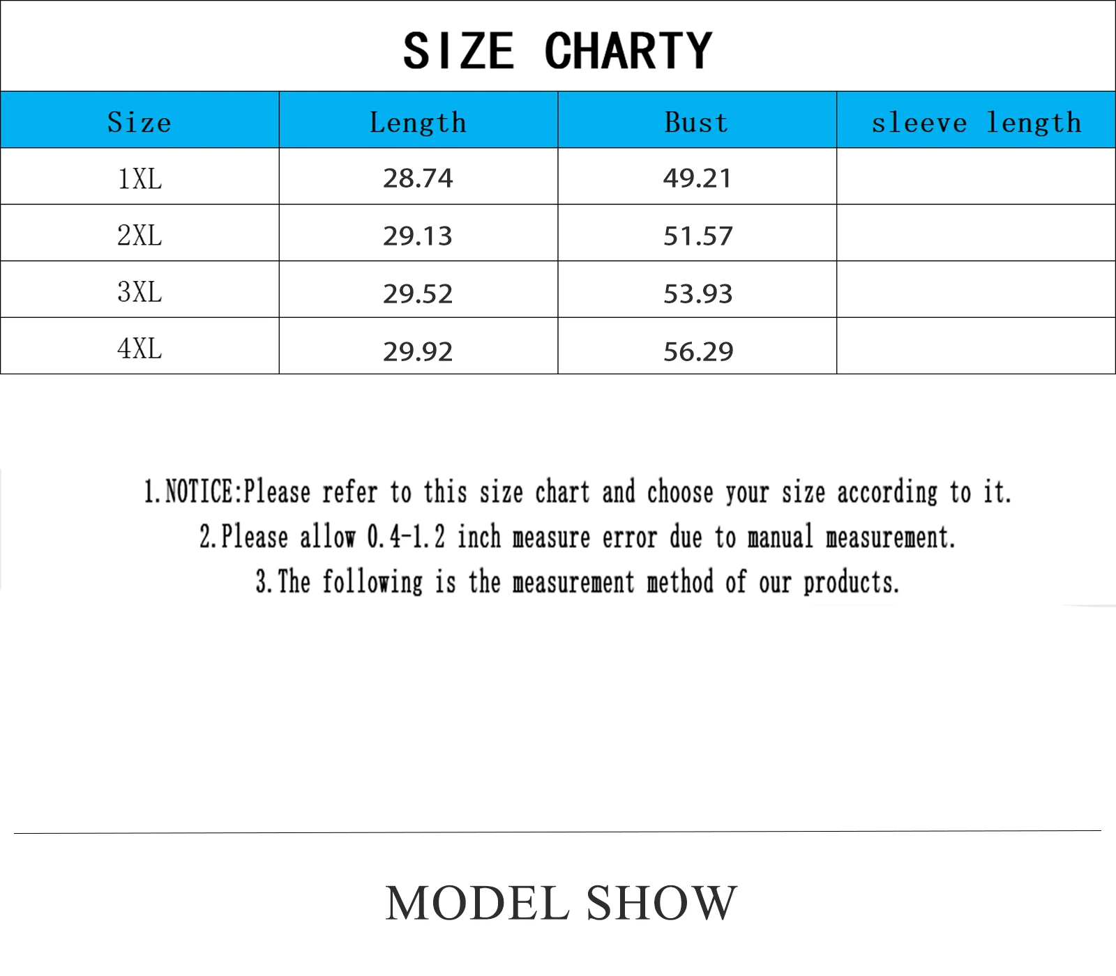 {"sizeInfoList":[{"length":{"cm":"125","inch":"49.21"},"size":"1XL","vid":12668979},{"length":{"cm":"131","inch":"51.57"},"size":"2XL","vid":200000322},{"length":{"cm":"137","inch":"53.94"},"size":"3XL","vid":115781},{"length":{"cm":"143","inch":"56.30"},"size":"4XL","vid":200000990}]}