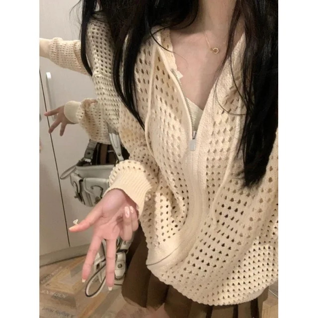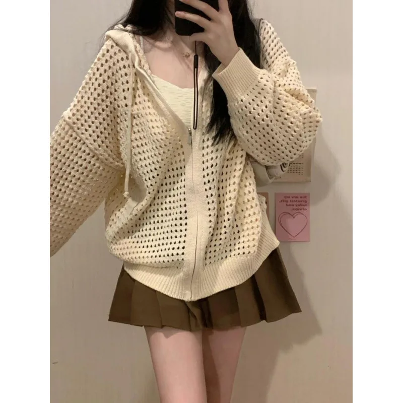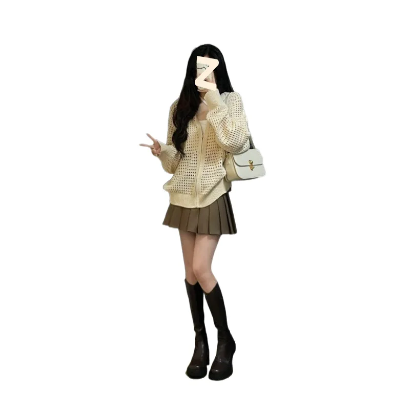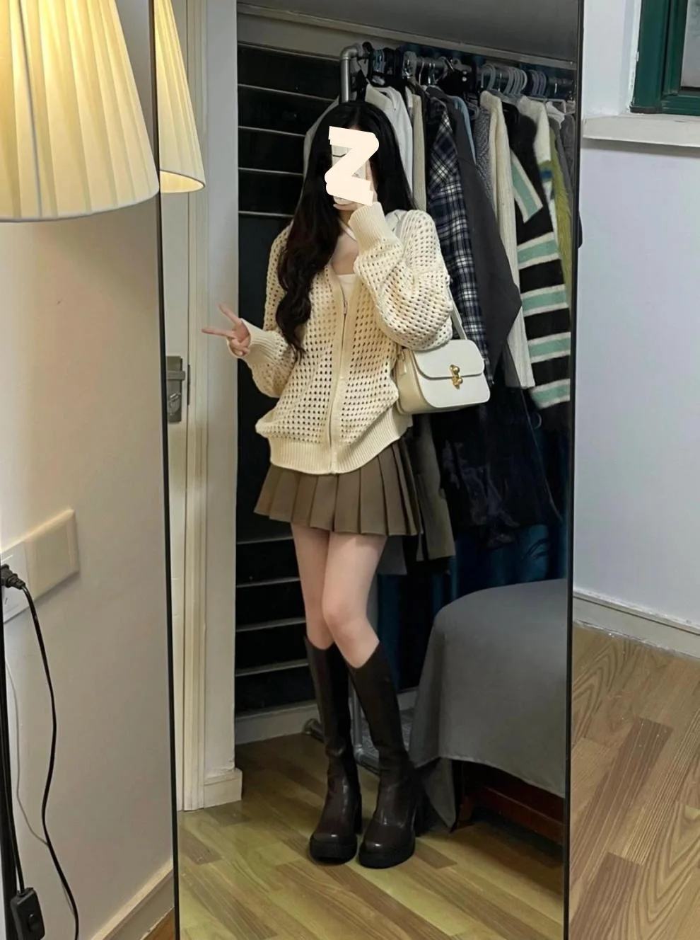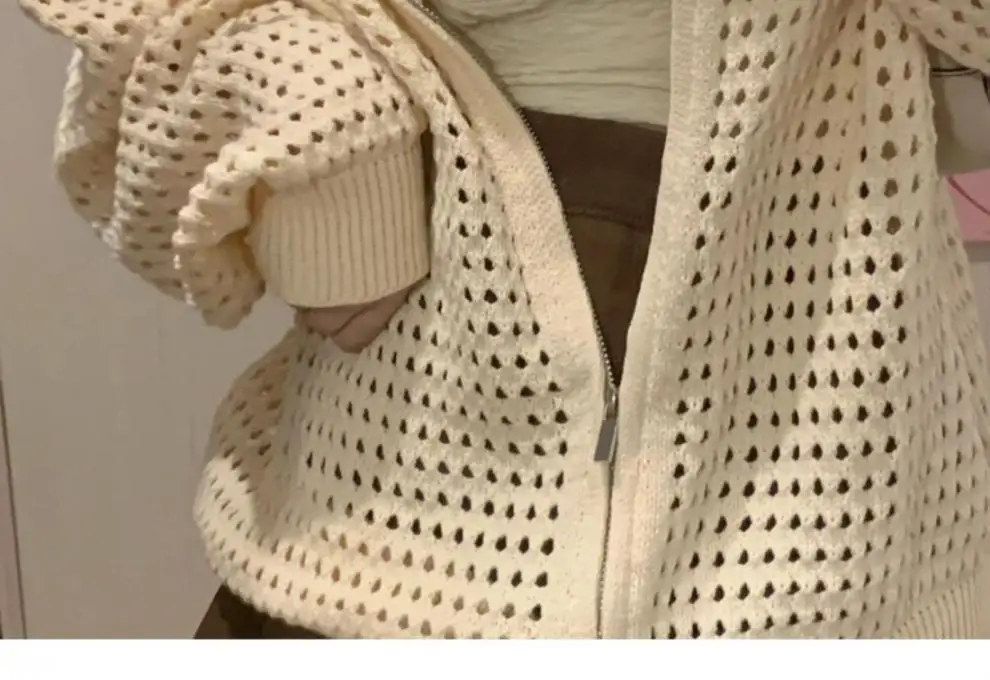 This zipped knit cardigan style jacket is not only stylish but also practical, offering easy layering options.