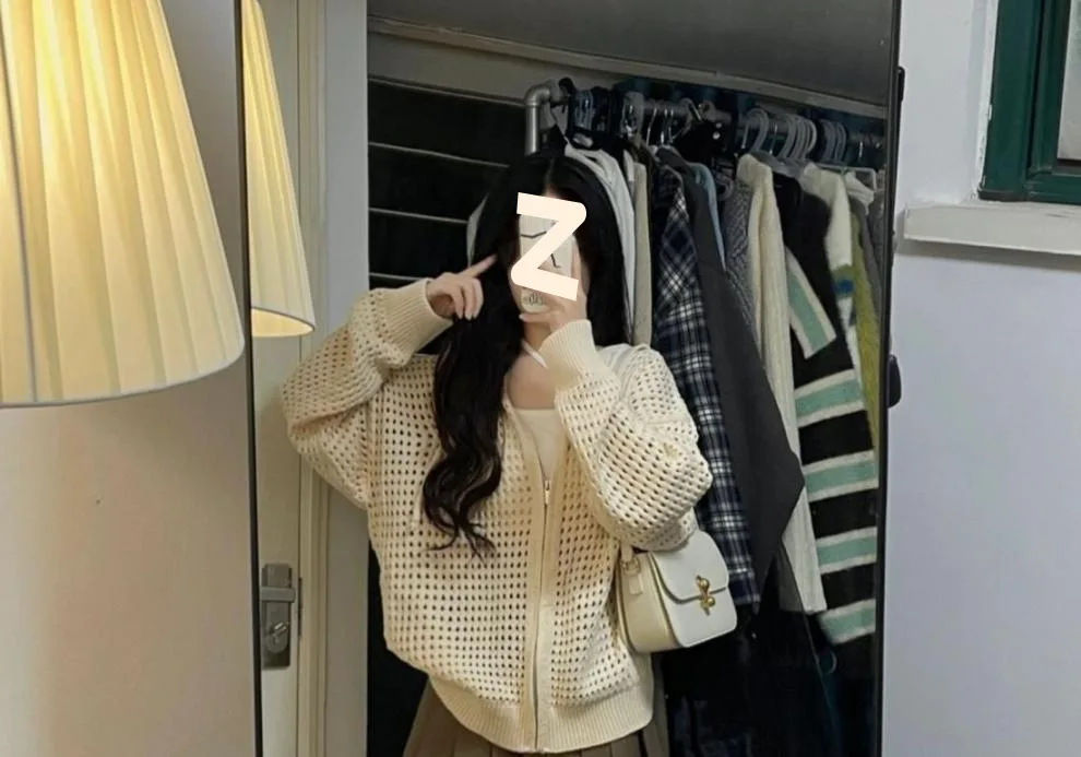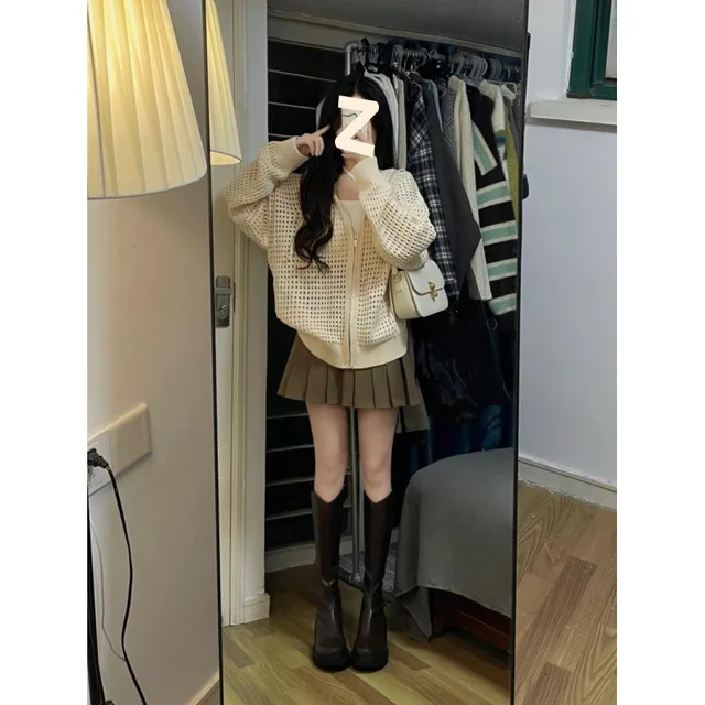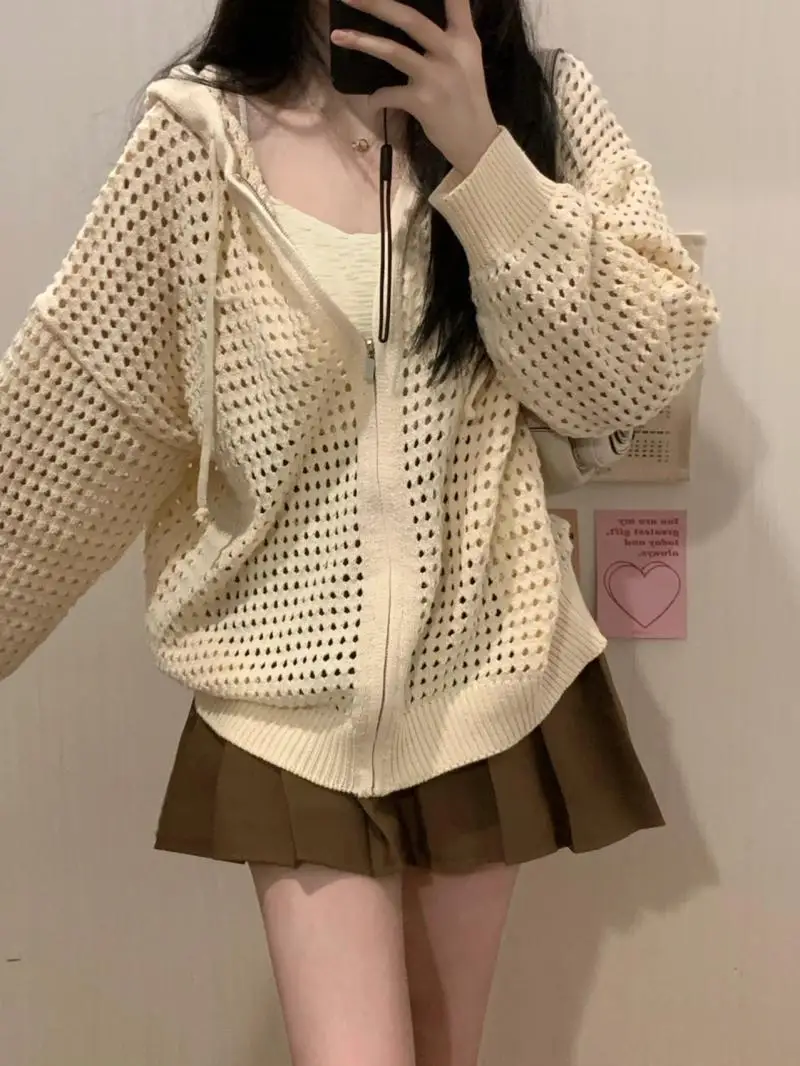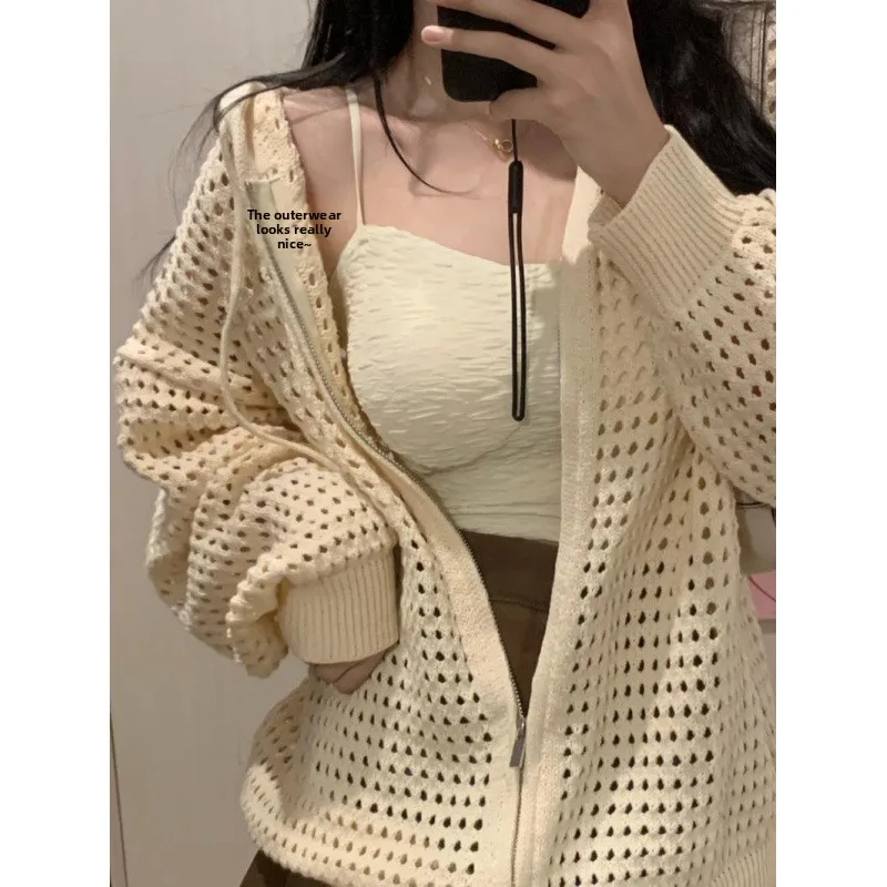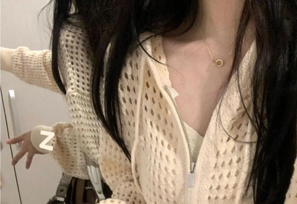 This zipped knit cardigan style jacket is not only stylish but also practical, offering easy layering options.