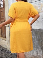 Plus Size Spring Summer Women Elegant Dress Casual Vacation Wrap Knot V Neck Lace-up Cardigan Dresses