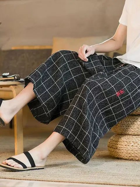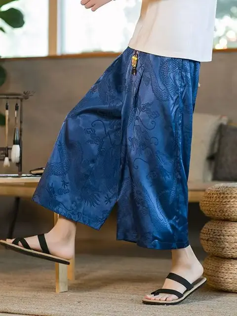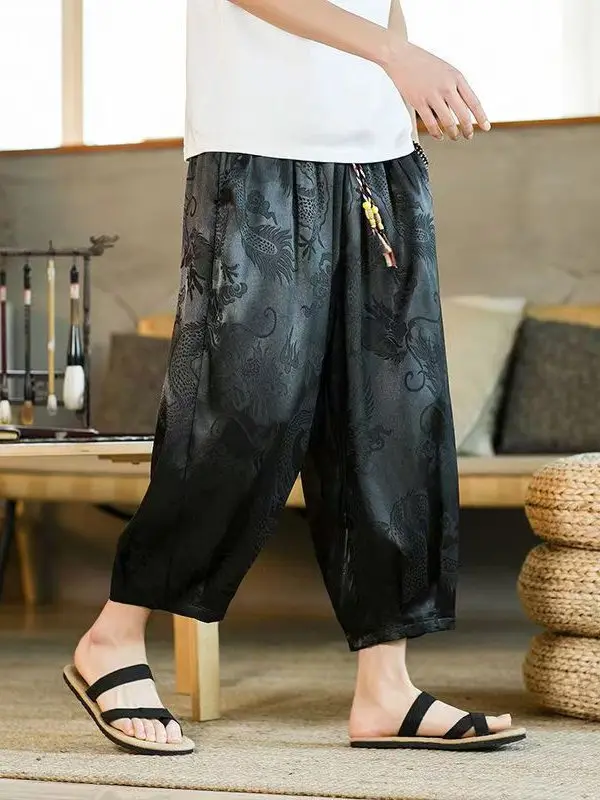 Crafted from ice silk material, these trousers offer a cool and breathable feel, perfect for summer wear.