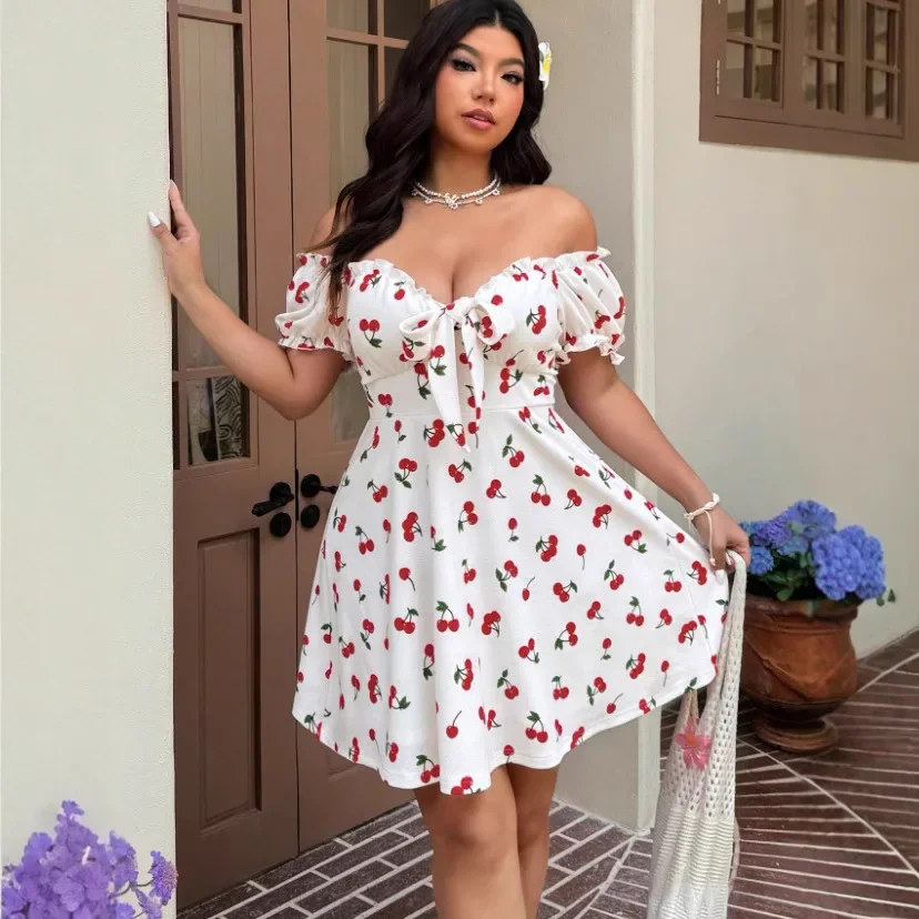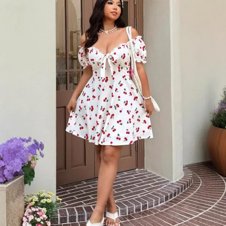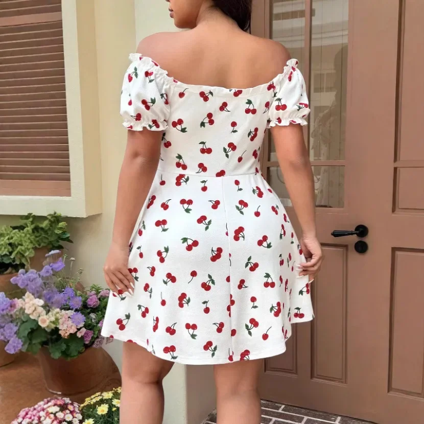 • Pastoral Style : Embrace the countryside charm with this pastural cherry print dress, perfect for those who love a touch of nature in their wardrobe.