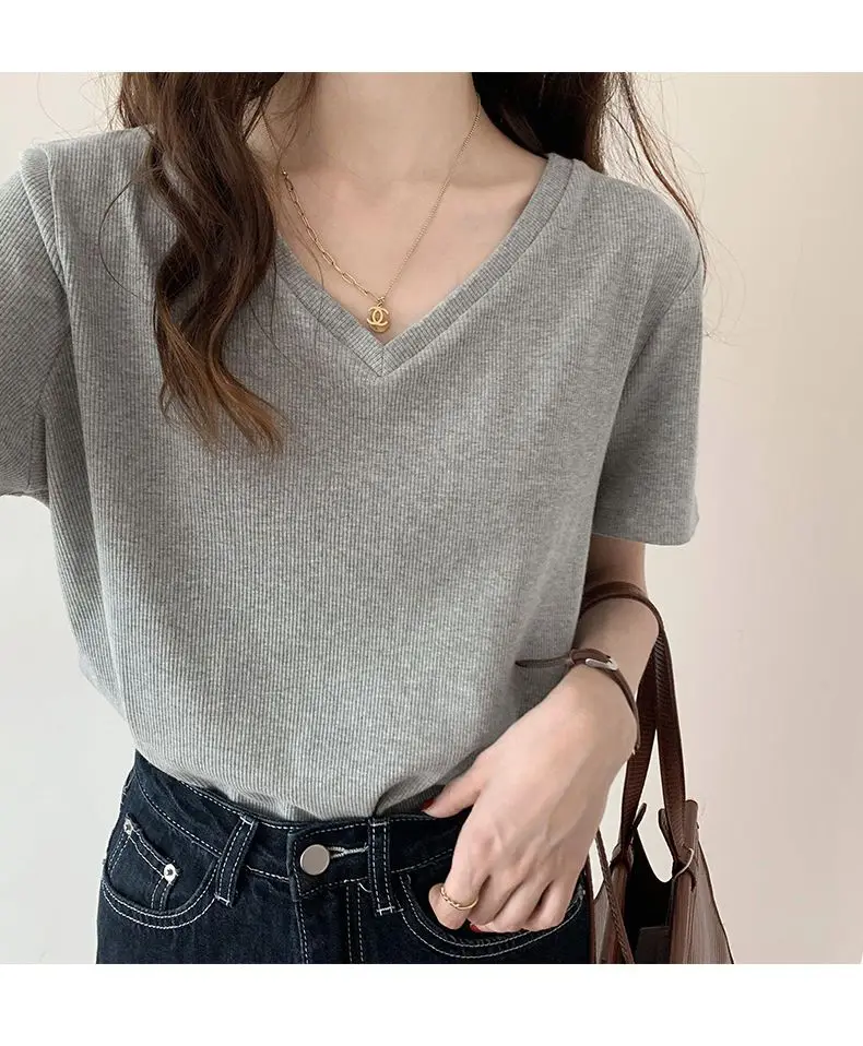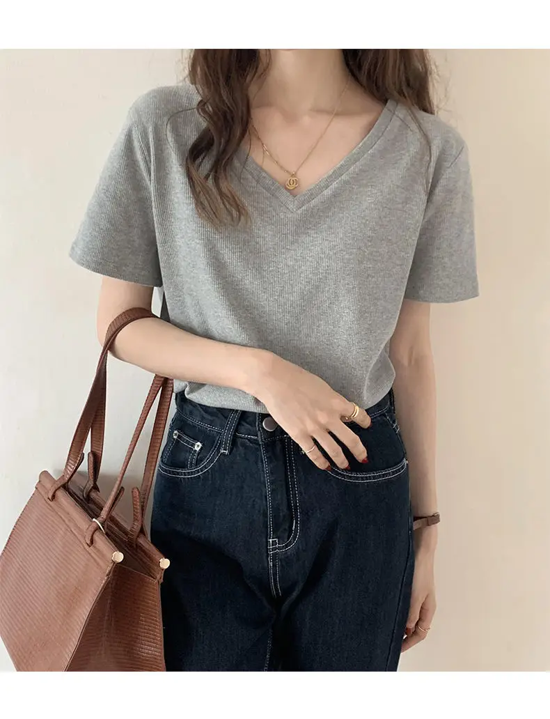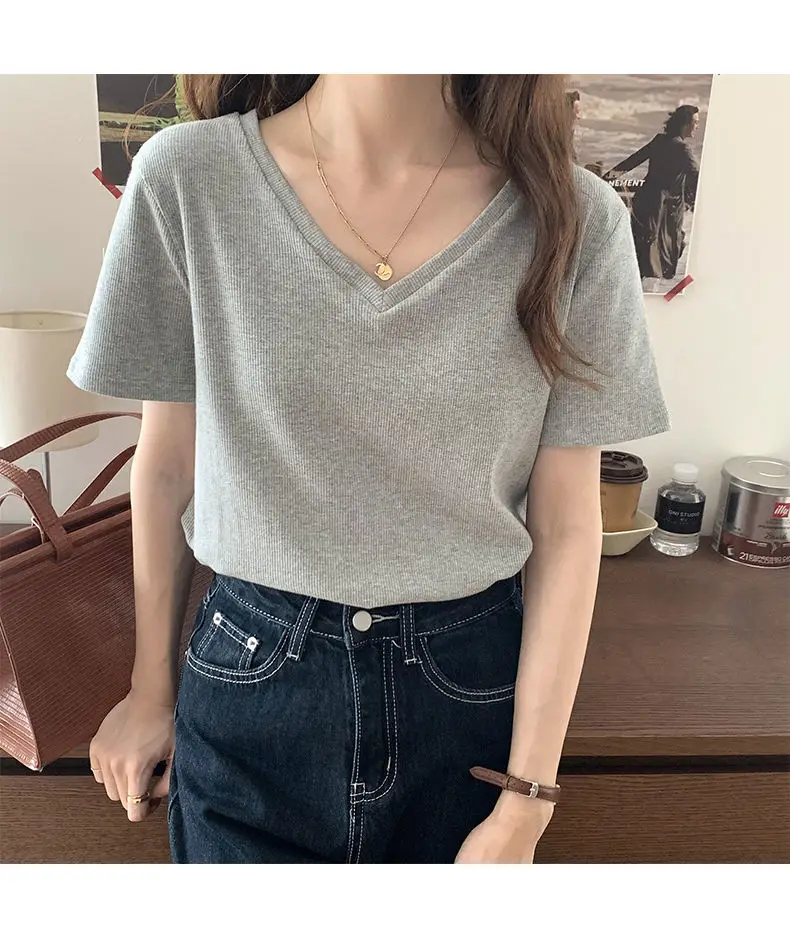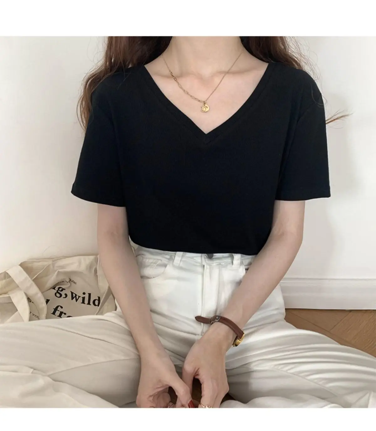 With its V-neck design and regular sleeve length, this T-shirt can be easily paired with various outfits, making it a versatile addition to any wardrobe.