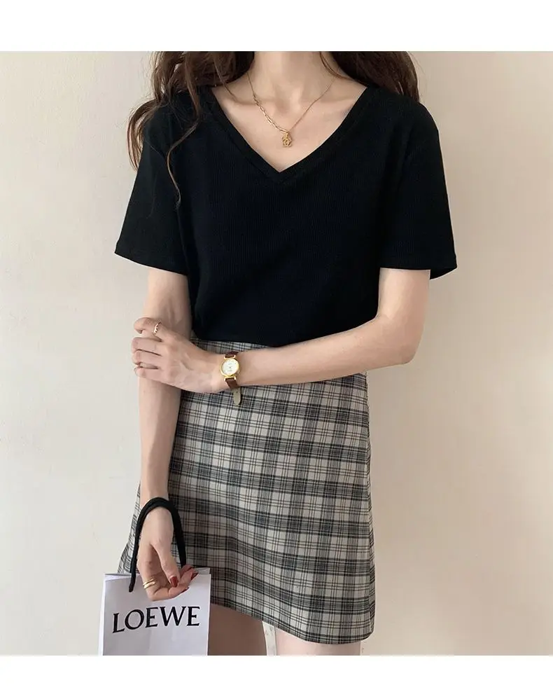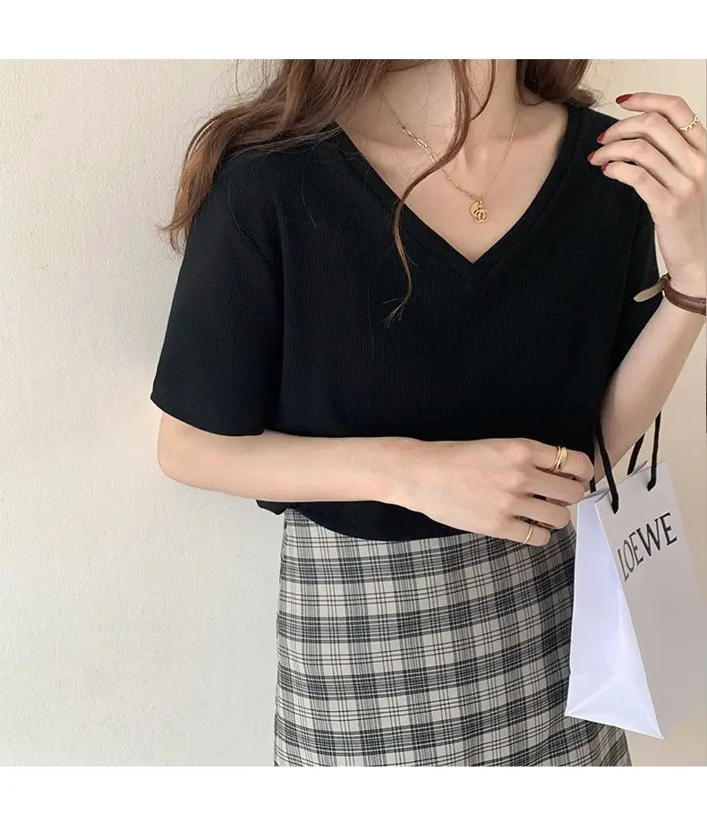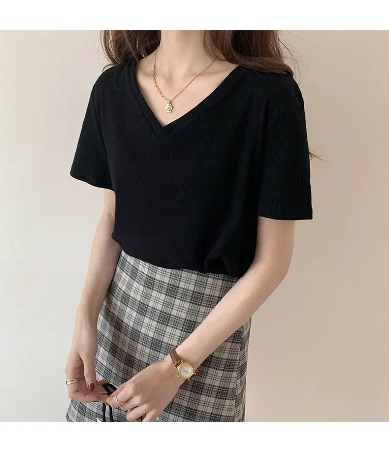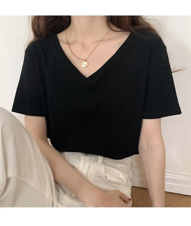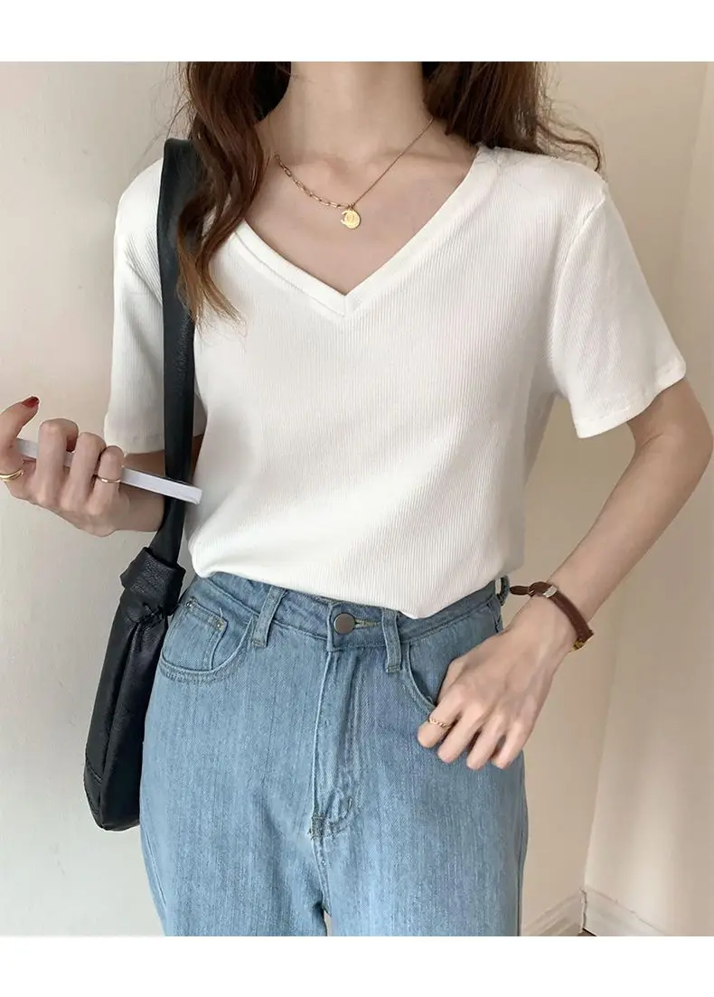 With its V-neck design and regular sleeve length, this T-shirt can be easily paired with various outfits, making it a versatile addition to any wardrobe.