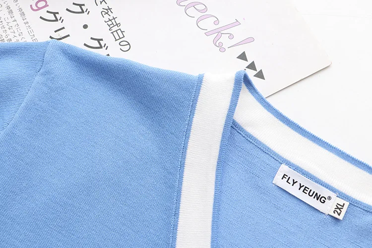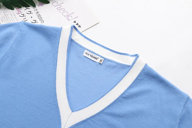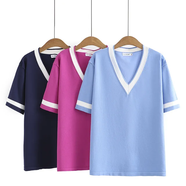 plus Size Knitted Ne ort Sve T-irt Women's Summer Slimming Top for Heavy Girls Korean Sle Straight Cut