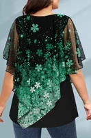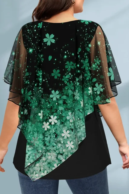 Plus Size Women T shirt Short Sleeve Casual Fake Two Piece Tops Floral Printed Vintage Loose Soft Round