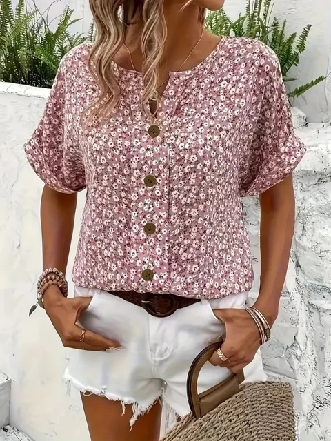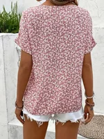 Plus Size Womens 2025 Spring Summer New Fashion Casual Floral Print V-Neck Short Sleeve T-Shirt