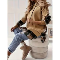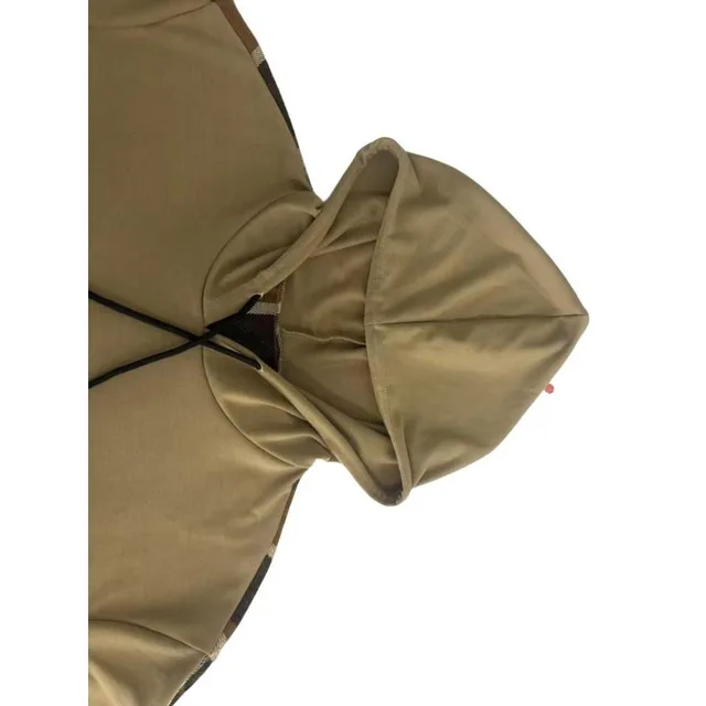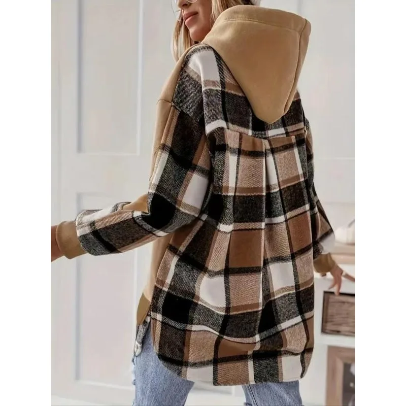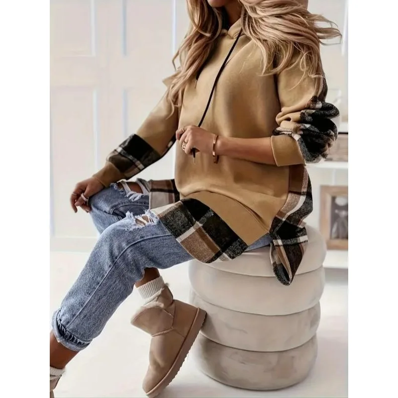 Heavyweight 420g Cotton Composite Silver Fox Velvet Plaid Patchwork Zipper Hooded Fleece Sweatshirt Street Style Trendy Women...