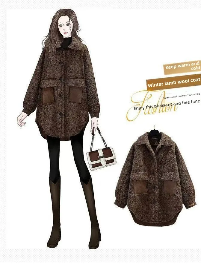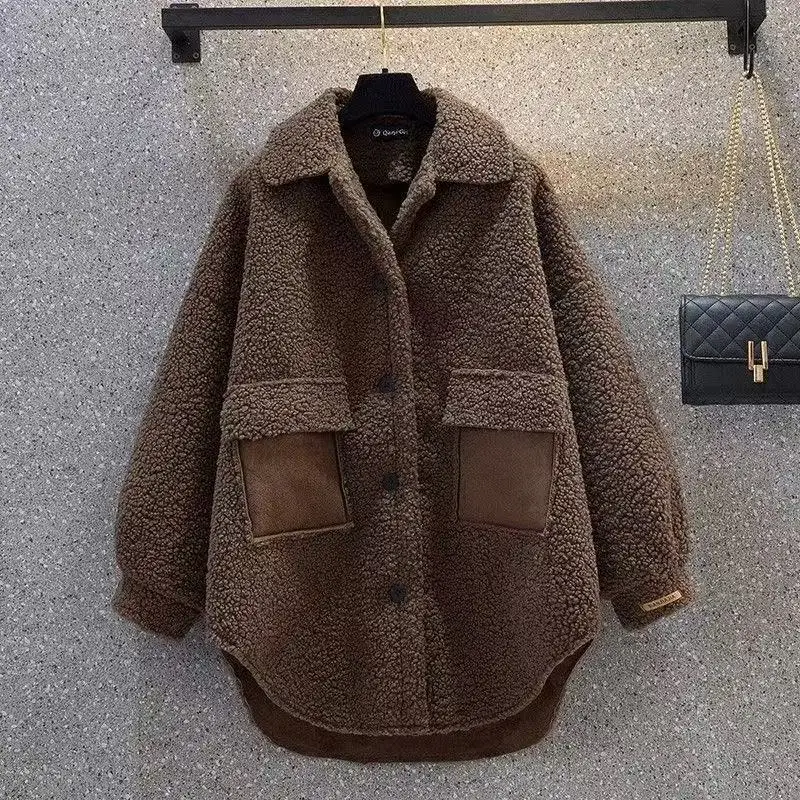 Plus Size Women’s Autumn Winter Thickened Lamb Fur Jacket Chic Hong Kong Style Design Casual Comfortable
