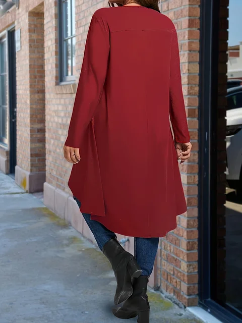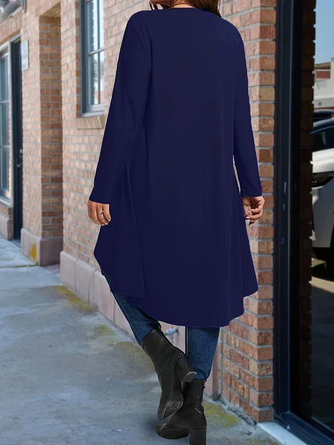 Be the first to review “Plus Size Women’s Elegant Asymmetrical Hem Long Sleeve T-Shirt Round Neck Casual Top Solid Color”