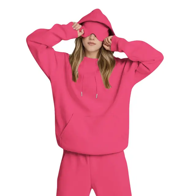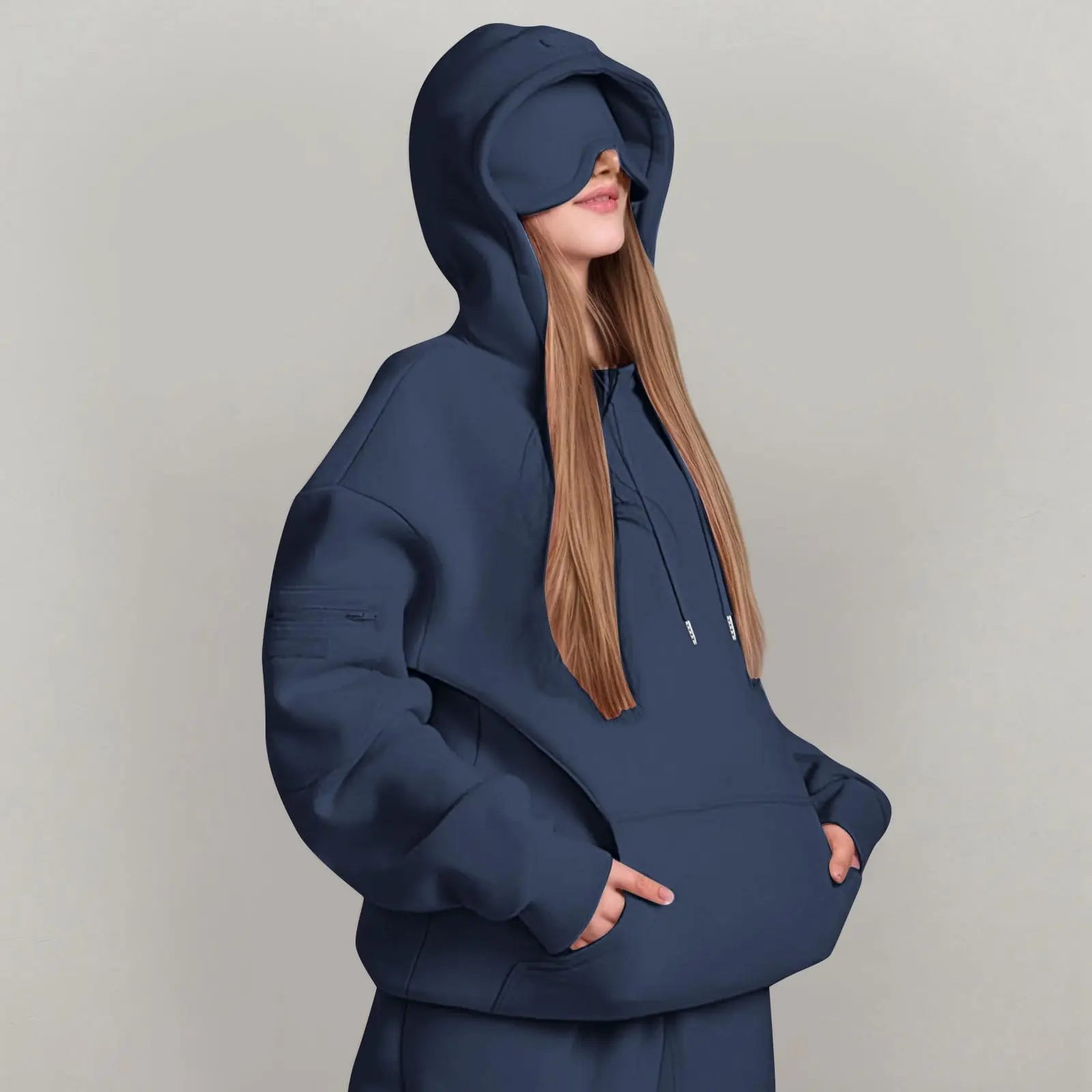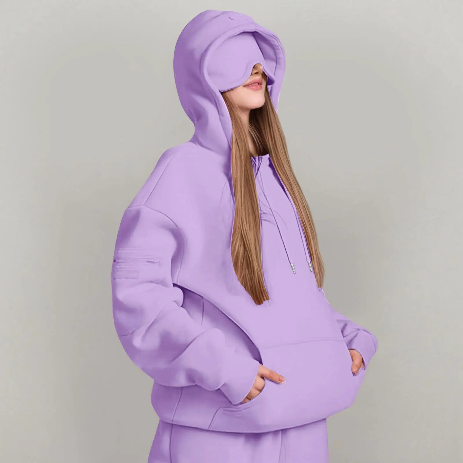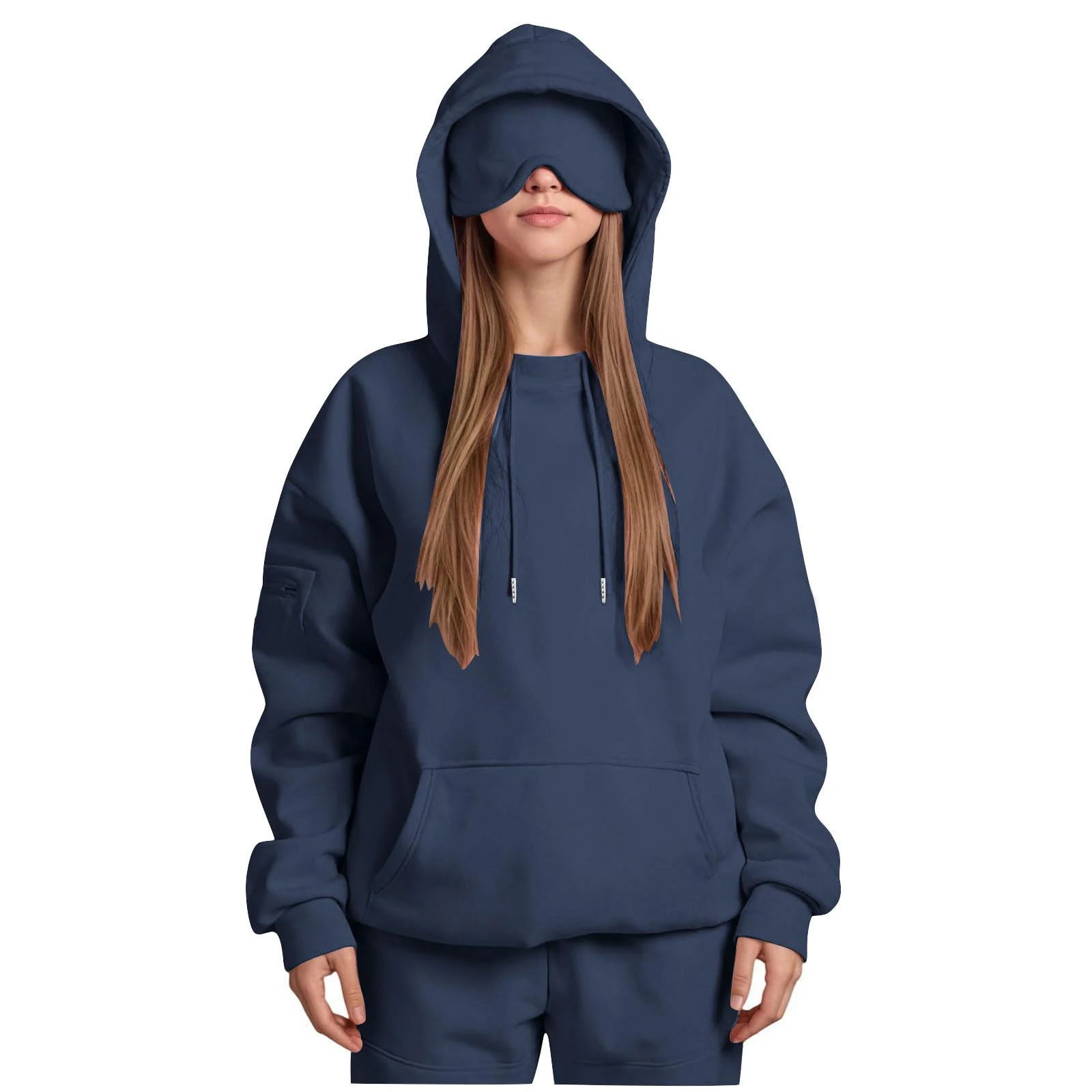 Hooded Sweatshirt With Built-in Eye Mask, Casual Long Sleeved, Solid Color Sports Pullover, Loose Sweatshirt