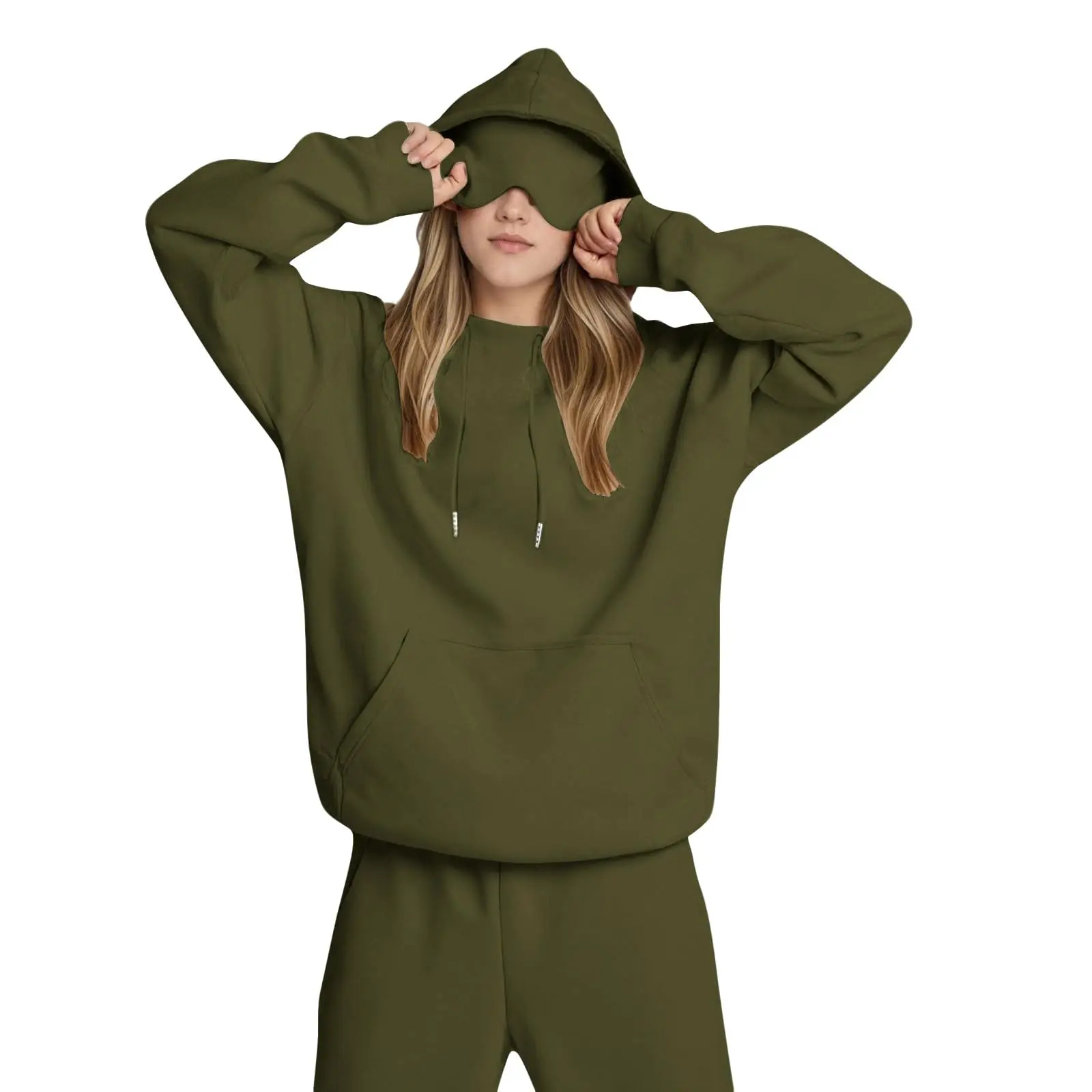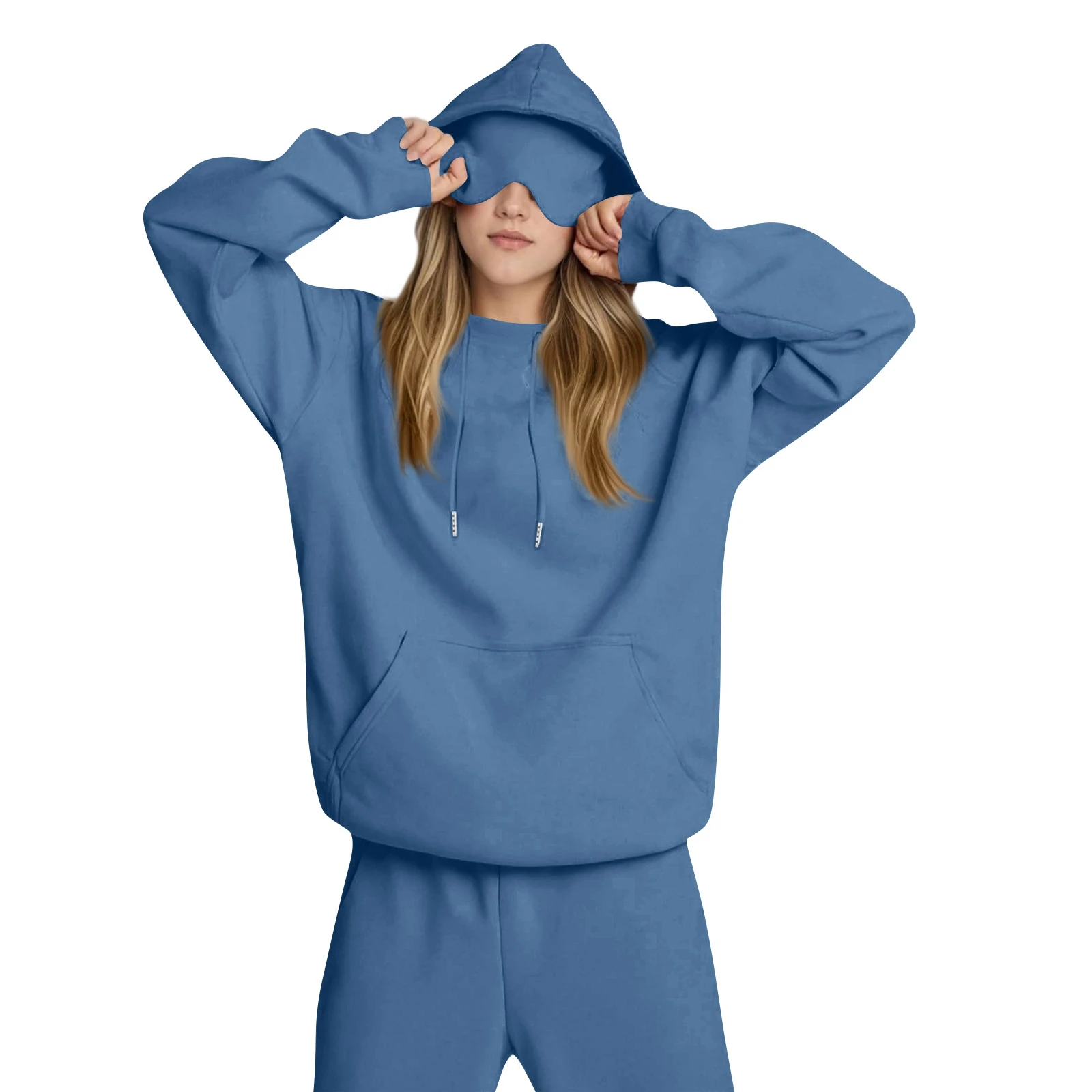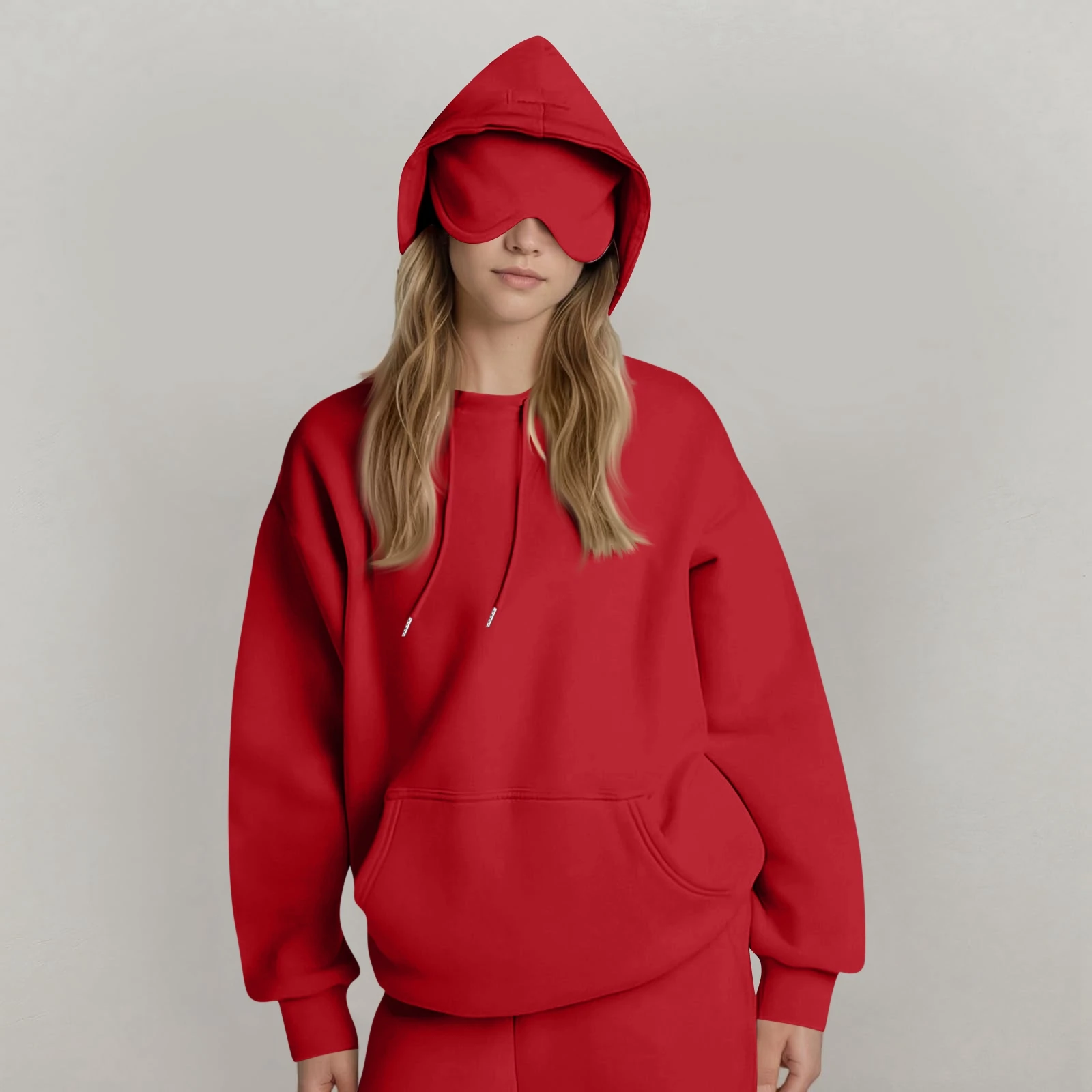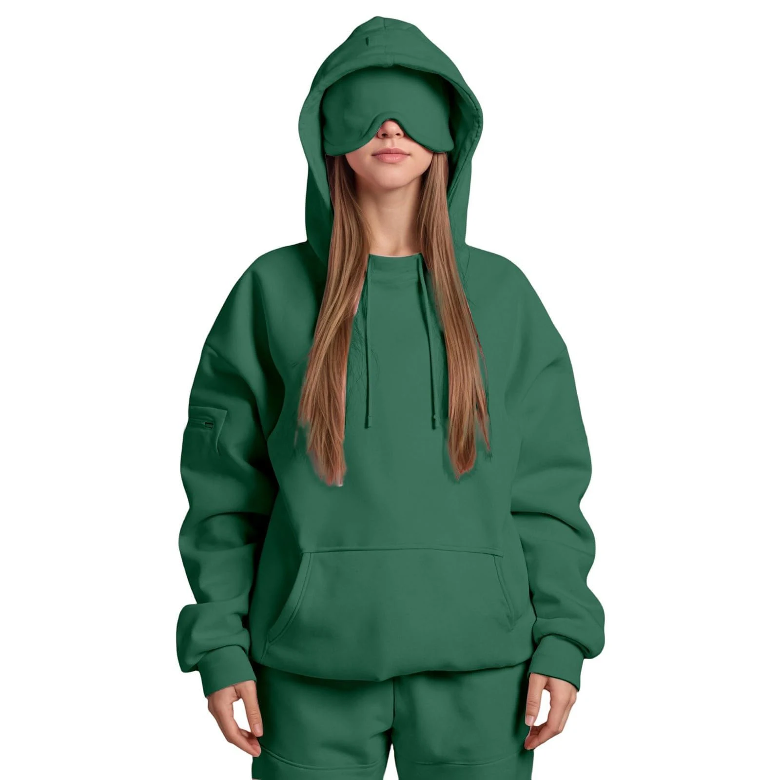Hooded Sweatshirt With Built-in Eye Mask, Casual Long Sleeved, Solid Color Sports Pullover, Loose Sweatshirt