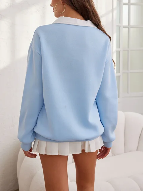 Long Sleeve Turn-down Collar Sweatshirt Embroidered Garden Uniform Workwear for Women Teacher's Clothing Autumn Winter