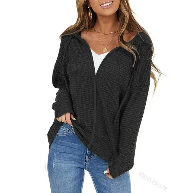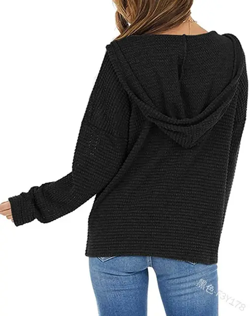 Plus Size Casual Sweatshirt, Women's Plus Solid Cable Long Sleeve Button Hoodie With Pockets