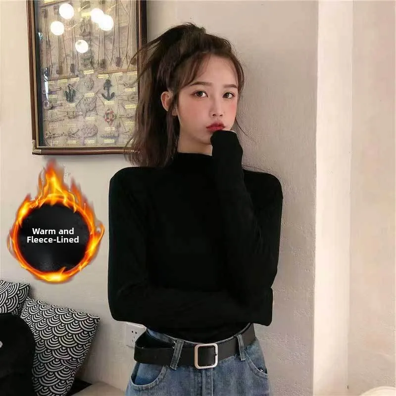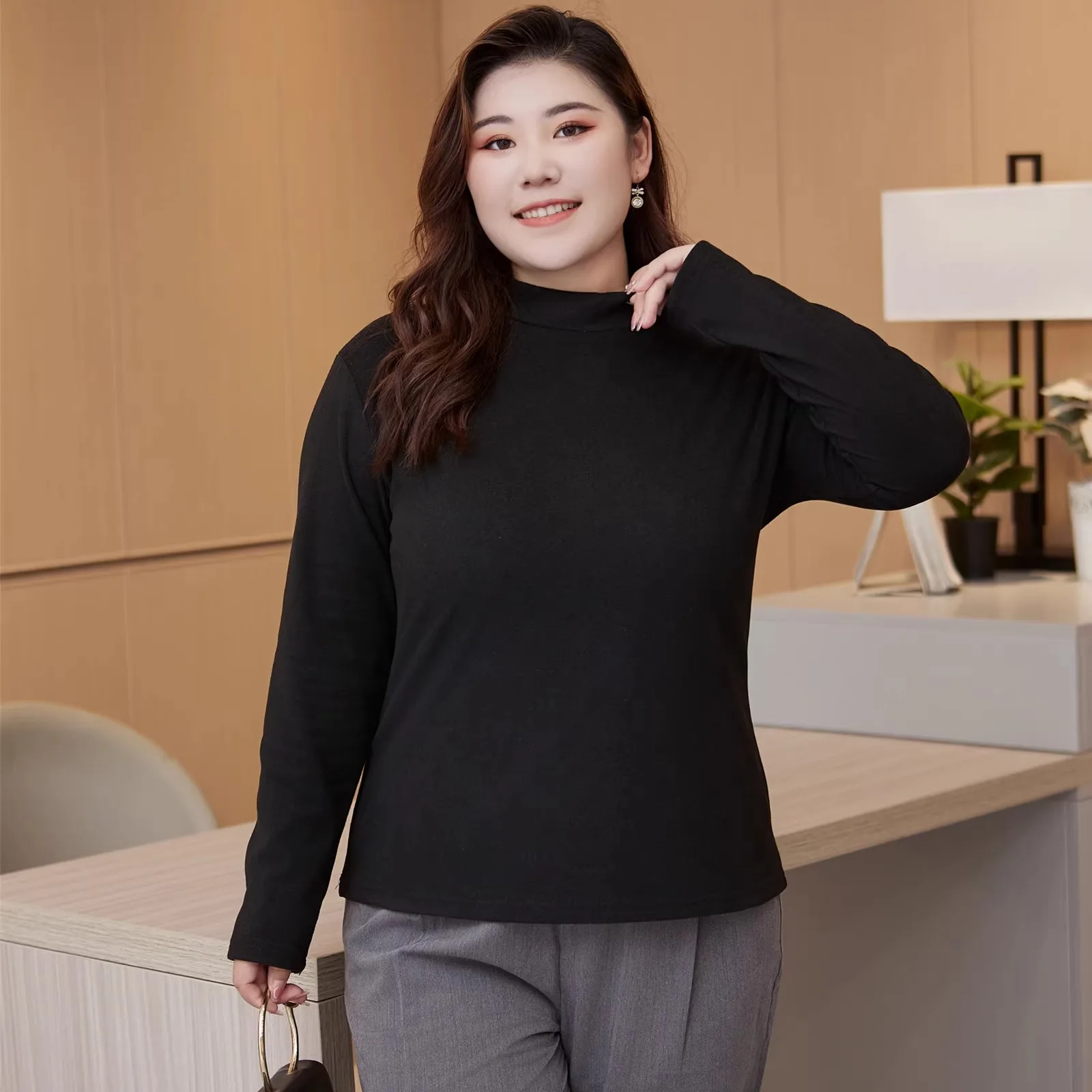plus Size Women's Long Sve High Collar Thermal irt Autumn Winter Thiened Polyester Slimming Versatile Warm Top T-irt