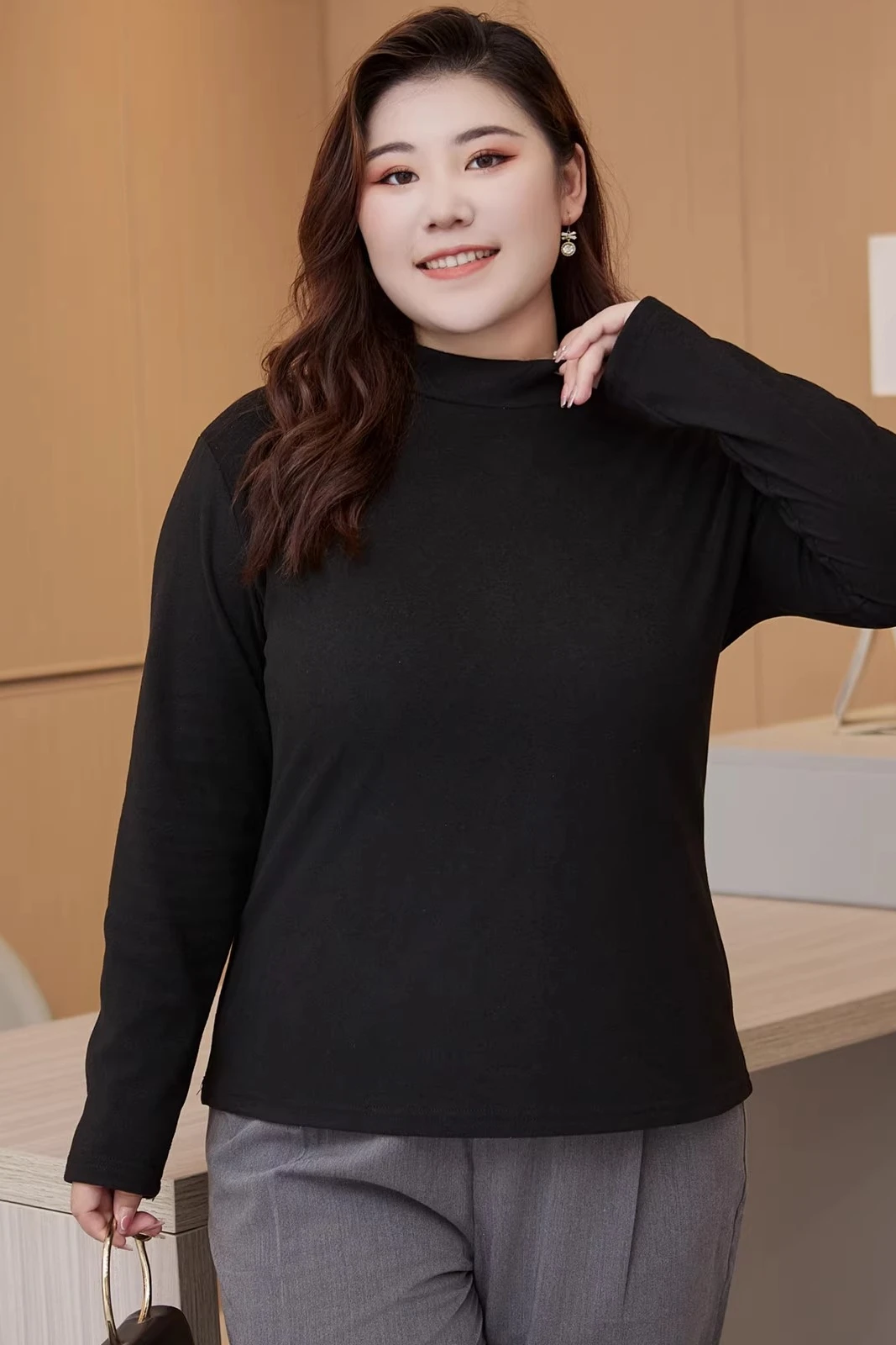 plus Size Women’s Long Sve High Collar Thermal irt Autumn Winter Thiened Polyester Slimming Versatile