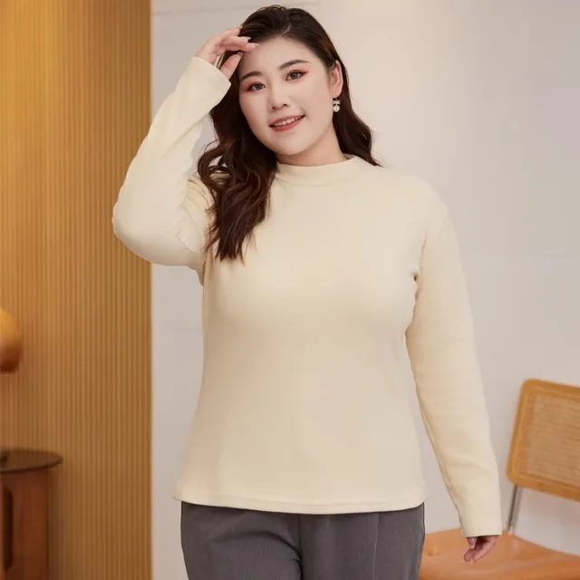 plus Size Women’s Long Sve High Collar Thermal irt Autumn Winter Thiened Polyester Slimming Versatile