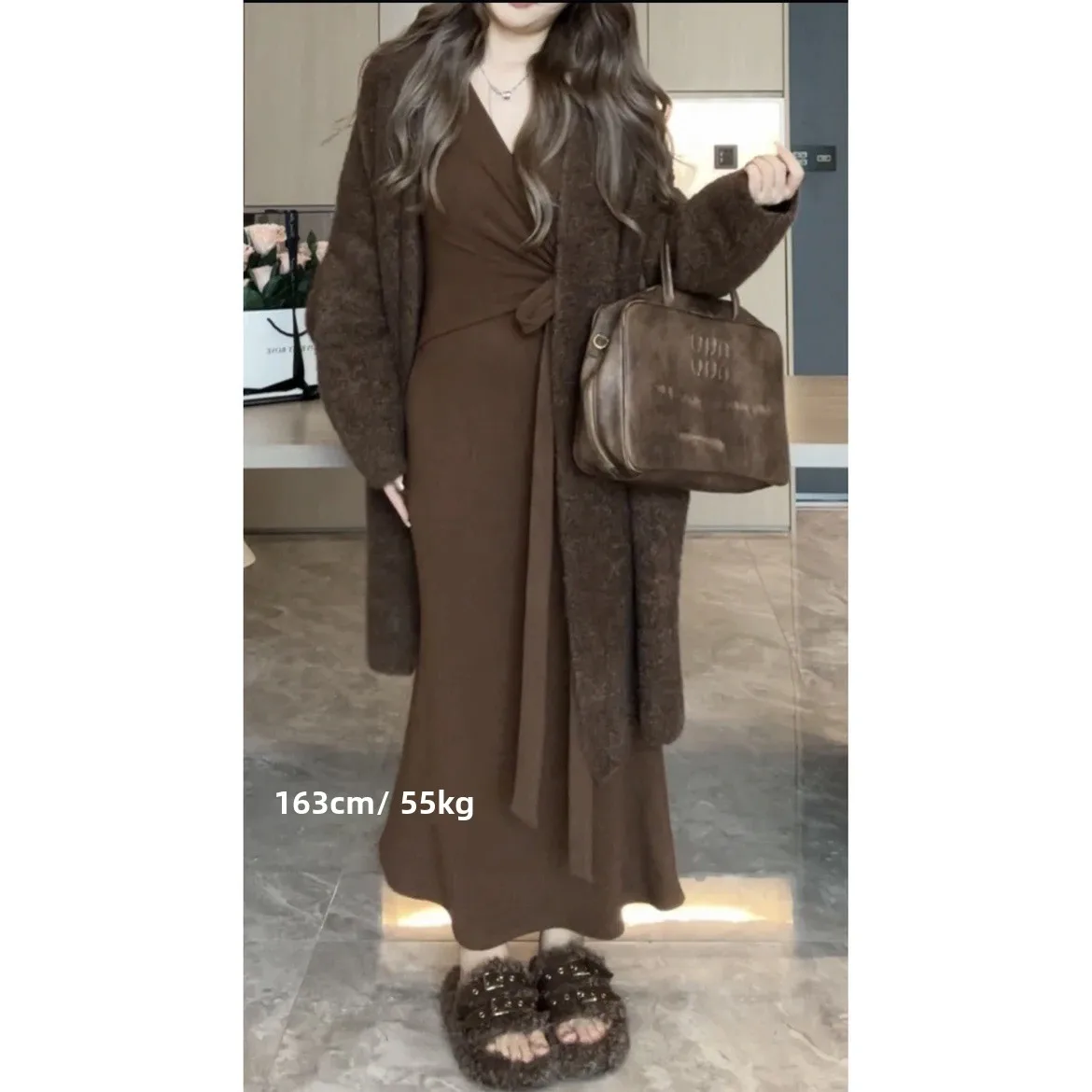 The V-neck design of this dress accentuates the neck and face, creating a slimming effect and adding a touch of elegance.