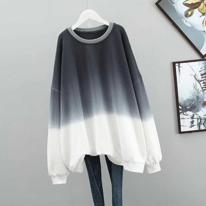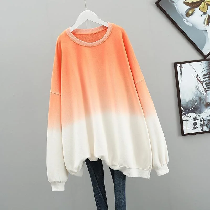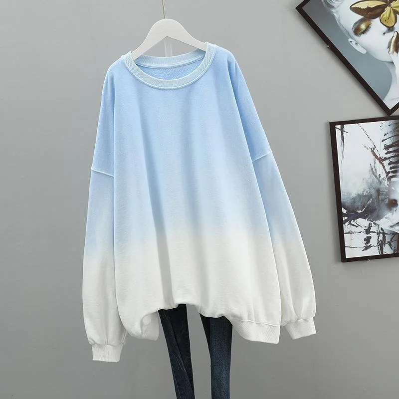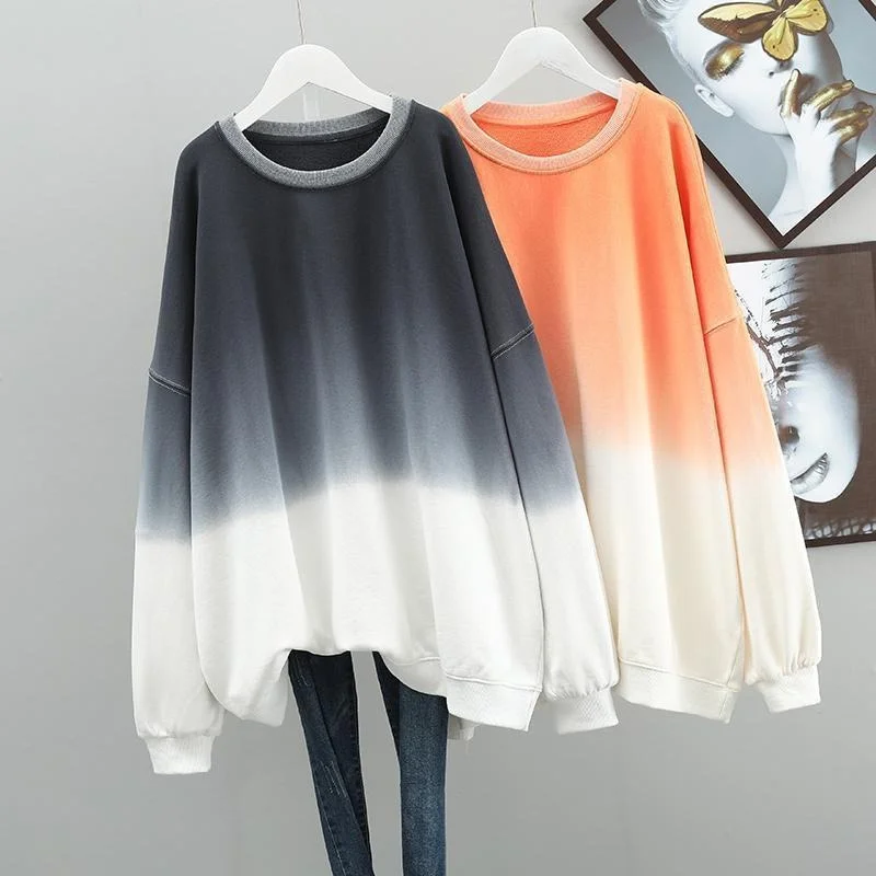 plus Size Women’s Loose Sweatirt round Ne Dyed T-irt Spring Autumn Faionable Comfortable Korean