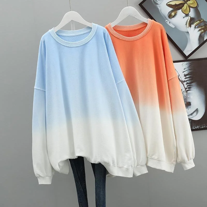 plus Size Women’s Loose Sweatirt round Ne Dyed T-irt Spring Autumn Faionable Comfortable Korean