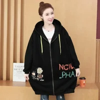 Plus Size Women's Printed Hoodie Cardigan Medium Length Thickened Warmth Fleece Lined Outerwear Coat for plus Size Women