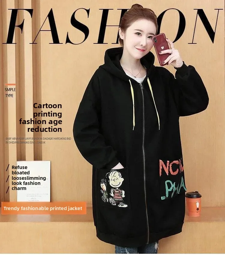 Be the first to review “Plus Size Women’s Printed Hoodie Cardigan Medium Length Thickened Warmth Fleece Lined Outerwear”
