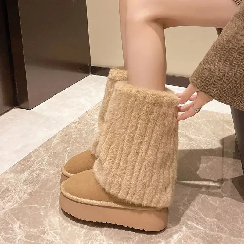 Plus Size Women’s Snow Boots Fleece Lined And Thickened Cotton Shoes Round Toe Daily Wear Velvet