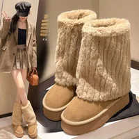Plus Size Women's Snow Boots Fleece Lined And Thickened Cotton Shoes Round Toe Daily Wear Velvet Upper Simple Style Adults