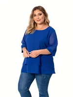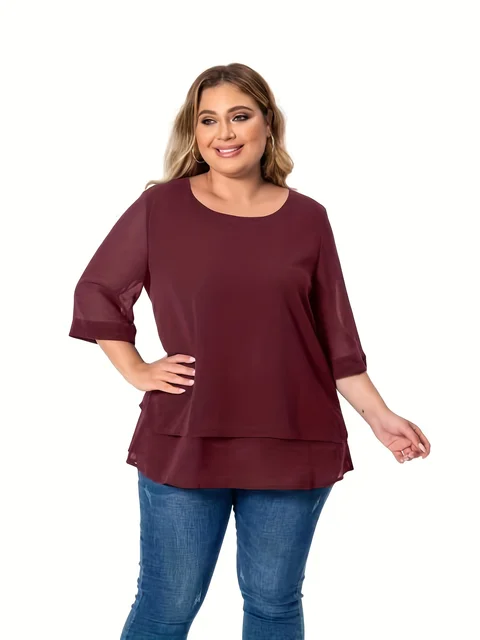 Plus size women’s spring & summer fashionable simple solid color double layer chiffon three-quarter