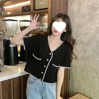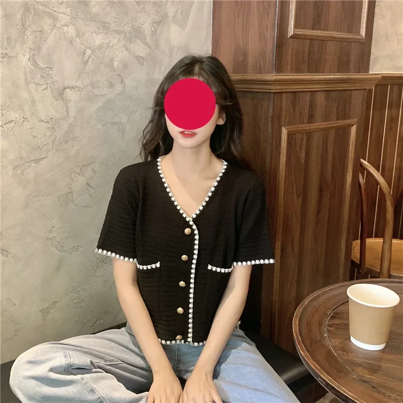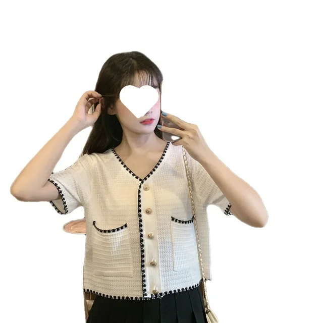 Plus Size Women's Summer Thin Short Sleeve V-Neck Floral Trim Slimming Fashion Casual Comfortable Breathable Large Clothes