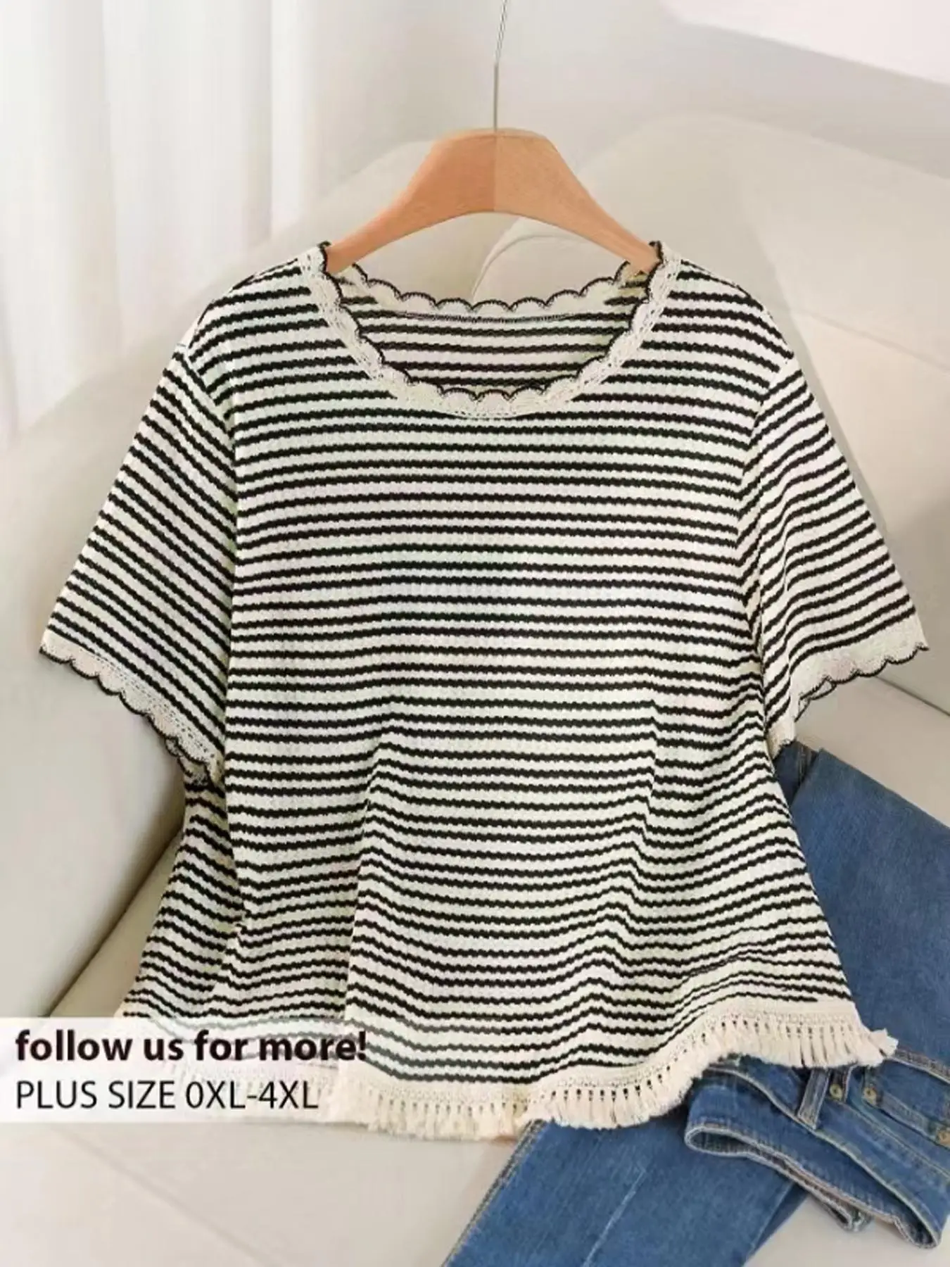 Plus Size Women's T-Shirt with Border Print, Casual Fitted Top for Summer, Comfortable and Stylish Ladies Apparel