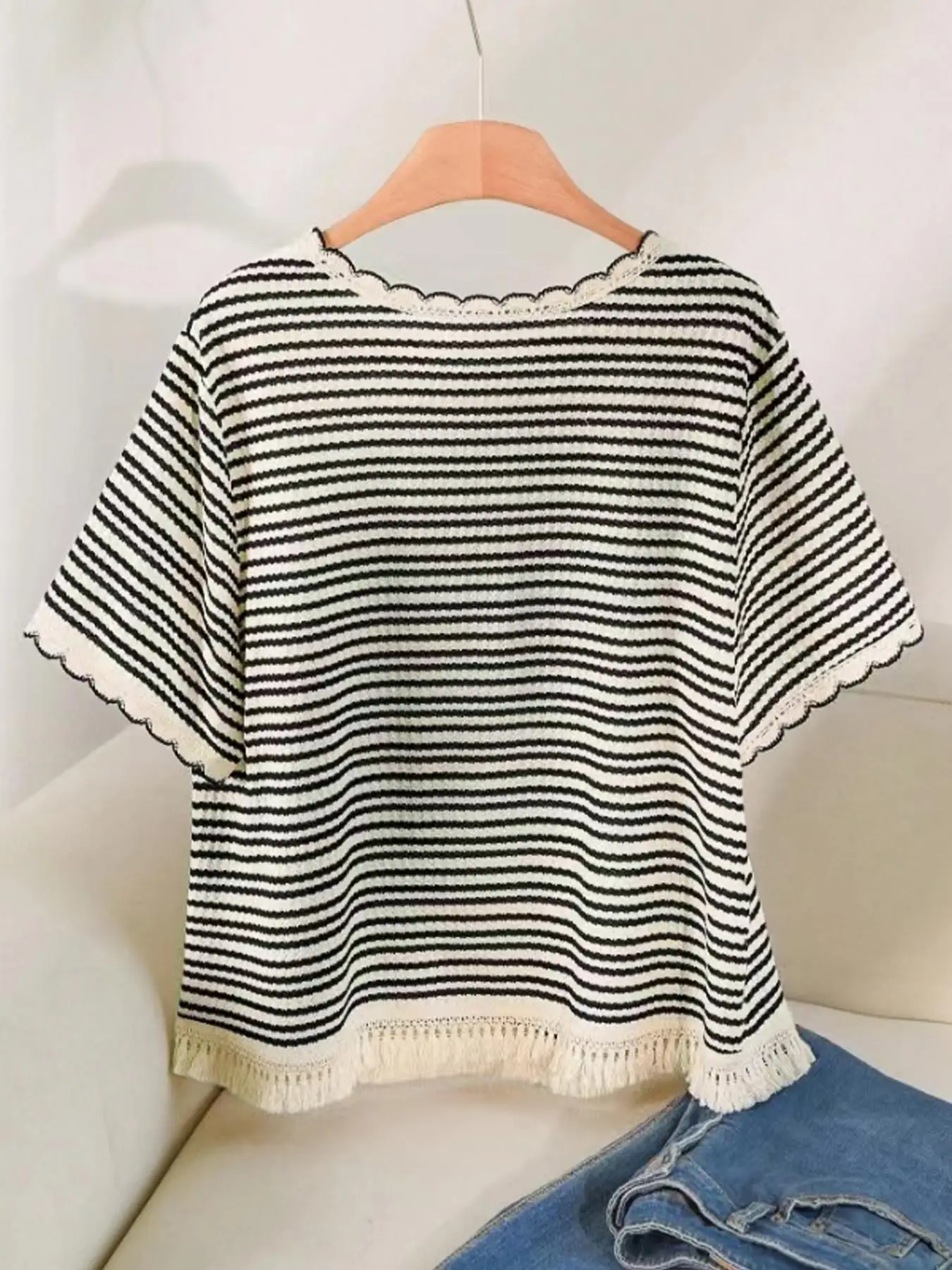 Be the first to review “Plus Size Women’s T-Shirt with Border Print, Casual Fitted Top for Summer, Comfortable and Stylish”