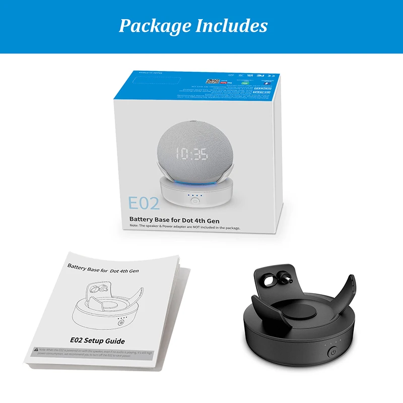 3. Plug and Play: Just push your Dot 4th & 5th to the E02 battery base, press and hold the power button for about 2 seconds, and then you are free to take it around.