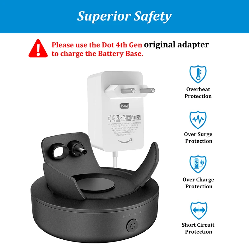 2.The size of the Dot battery Base perfectly fits the Dot 4th Gen, so that the device is well protected, and there is no need to worry about it falling off.