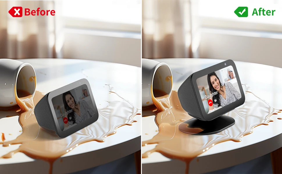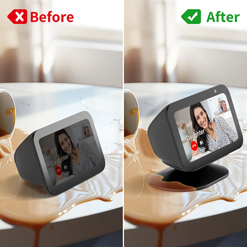 【Well Designed & Perfectly Functional】Clean lines and functional. There is a part that sticks out on the base of the stand that fits the Show base perfectly. The Echo Show 5 (3rd Gen) adjustable stand lifts it slightly off the counter in your kitchen so it won’t get messy.