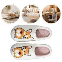 Plush Dog Slippers Cartoon Animal Slippers Anti Slip Slip-on House Shoes Comfortable Funny Corgi Dog Slippers for Indoor Bedroom