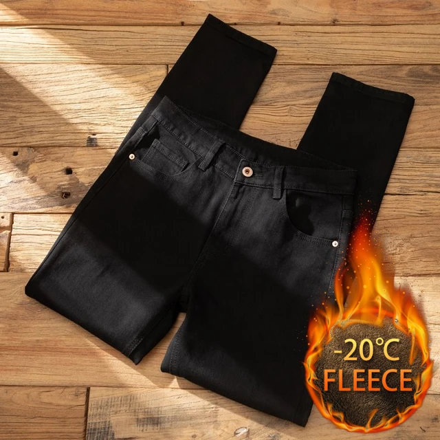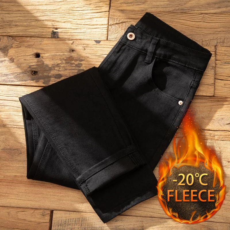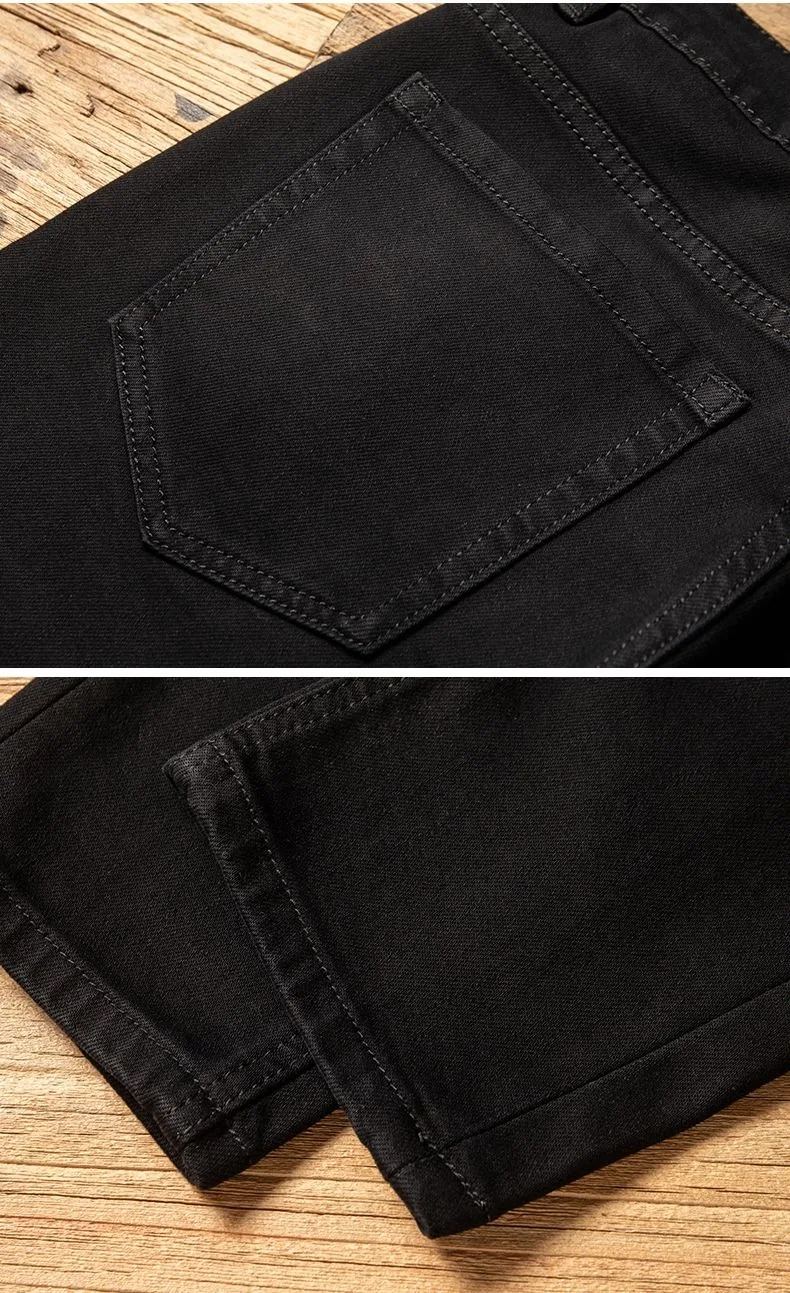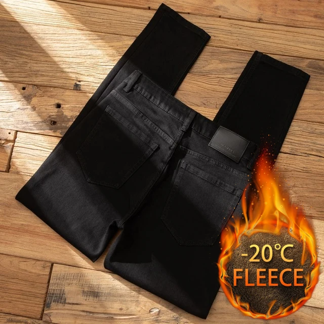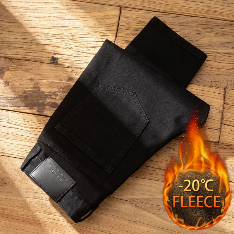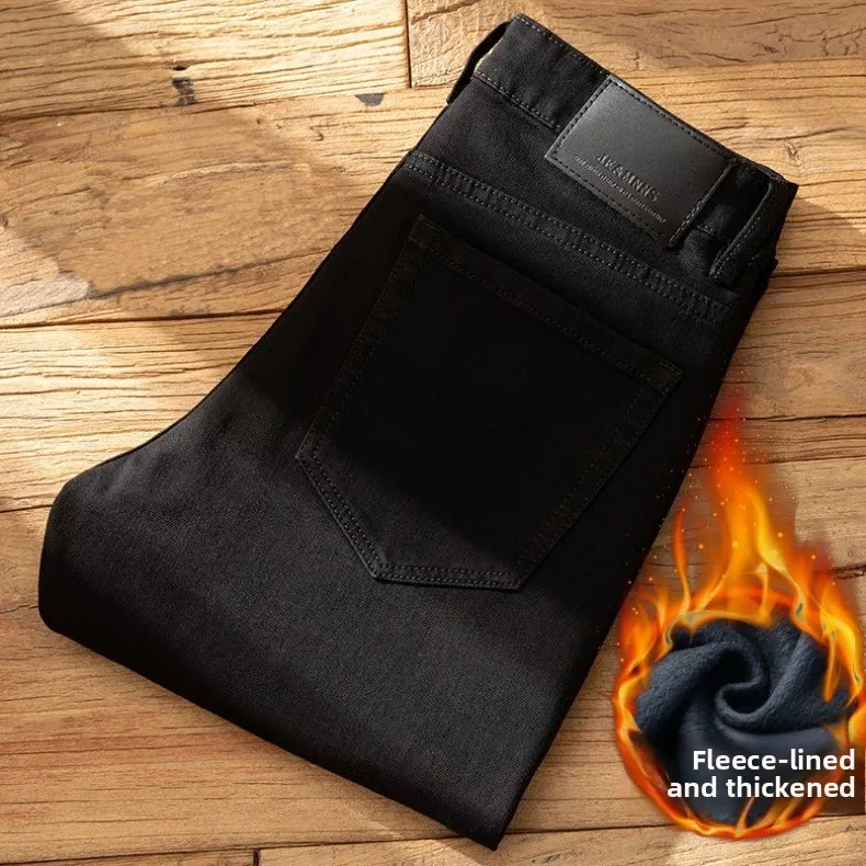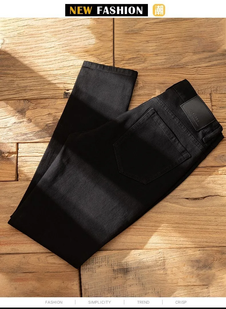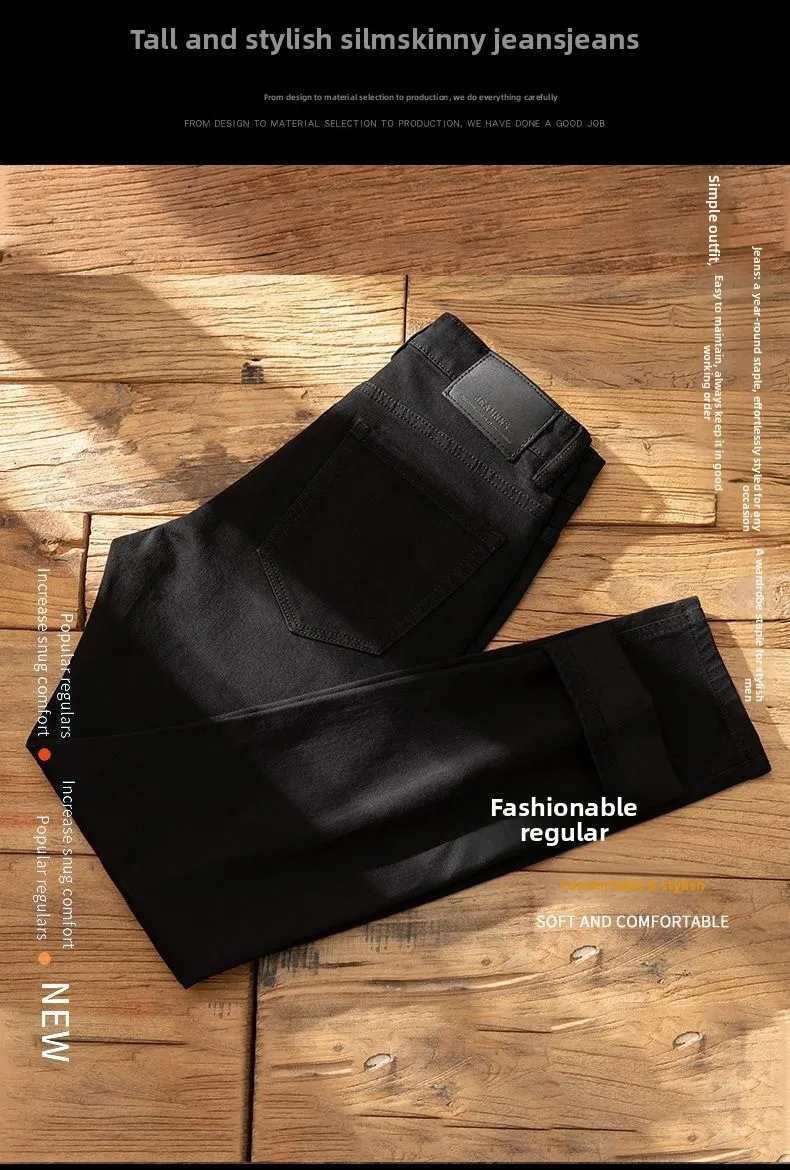 Plush Plush Jeans Men’s Slim-fit Small Feet High-end Black Trendy Brand Casual Long Winter Pants