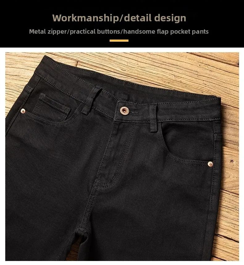 Men Comfortable Soft Business Fashion Straight Casual Denim Trousers Male Brand Clothing Light Luxury Stretch Slim Fit Pants