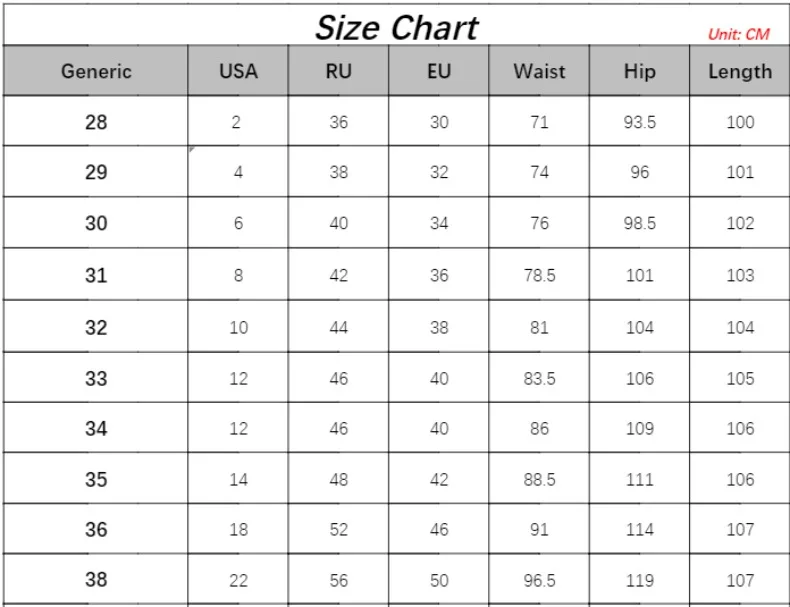 | size_info | {"sizeInfoList":[{"length":{"cm":"71","inch":"27.95"},"size":"28","vid":-1},{"length":{"cm":"74","inch":"29.13"},"size":"29","vid":-2},{"length":{"cm":"76","inch":"29.92"},"size":"30","vid":-3},{"length":{"cm":"78.5","inch":"30.91"},"size":"31","vid":-4},{"length":{"cm":"81","inch":"31.89"},"size":"32","vid":-5},{"length":{"cm":"83.5","inch":"32.87"},"size":"33","vid":-6},{"length":{"cm":"86","inch":"33.86"},"size":"34","vid":-7},{"length":{"cm":"88.5","inch":"34.84"},"size":"35","vid":-8},{"length":{"cm":"91","inch":"35.83"},"size":"36","vid":-9},{"length":{"cm":"96.5","inch":"37.99"},"size":"38","vid":-37}]} |