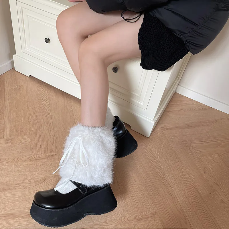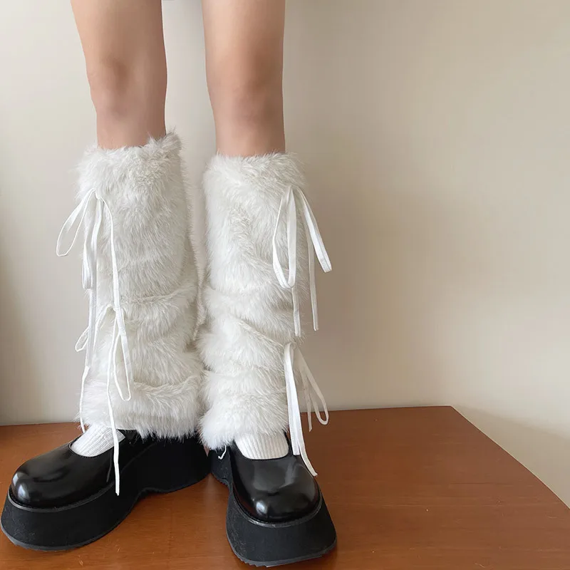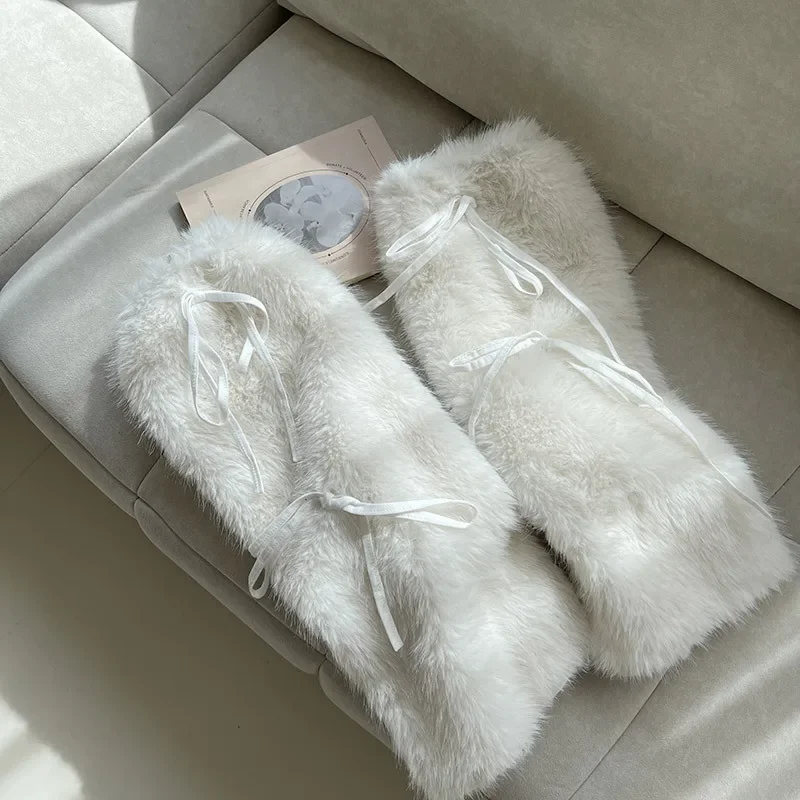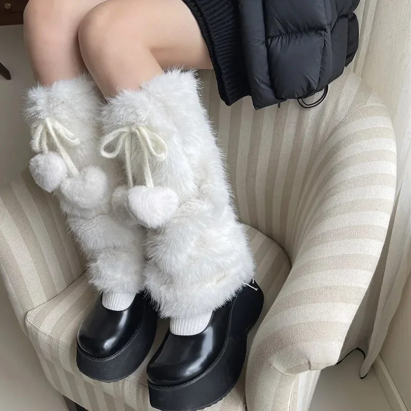 Plush Pom Pom Faux Rabbit Fur Leg Warmers White Ball Winter Warm Thickened Plush Leggings Socks Y2k Boots Cover Socks