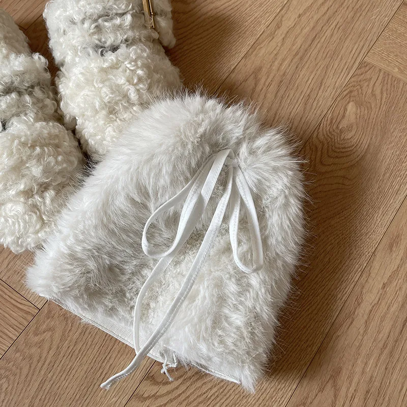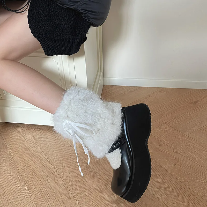 Plush Pom Pom Faux Rabbit Fur Leg Warmers White Ball Winter Warm Thickened Plush Leggings Socks Y2k Boots