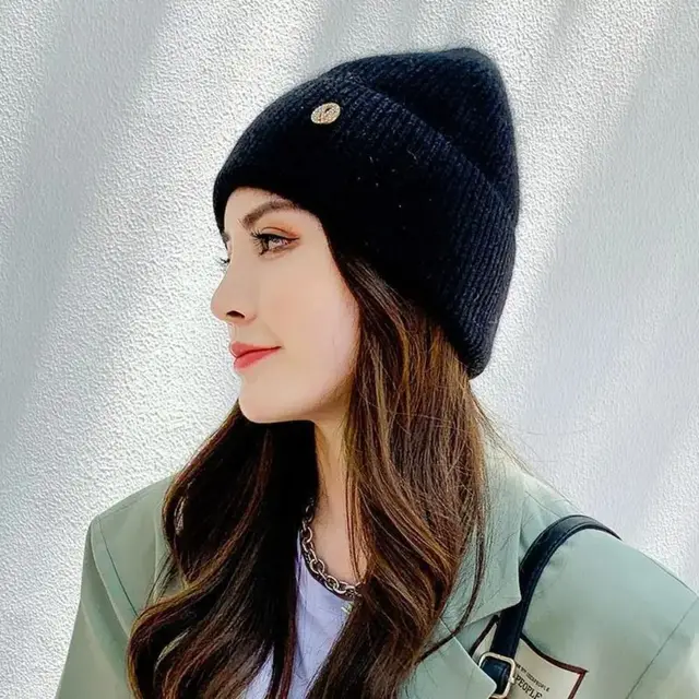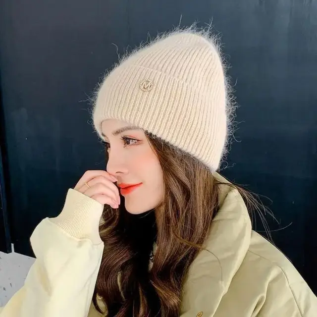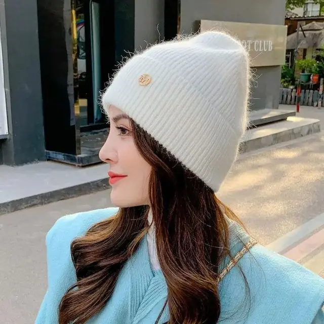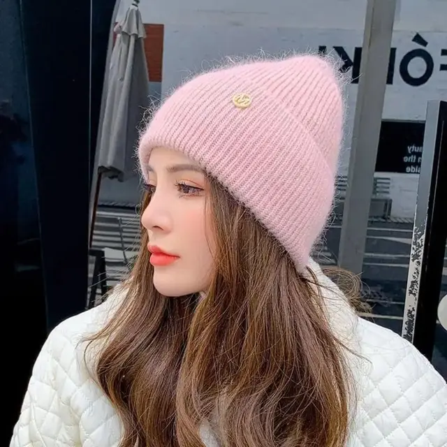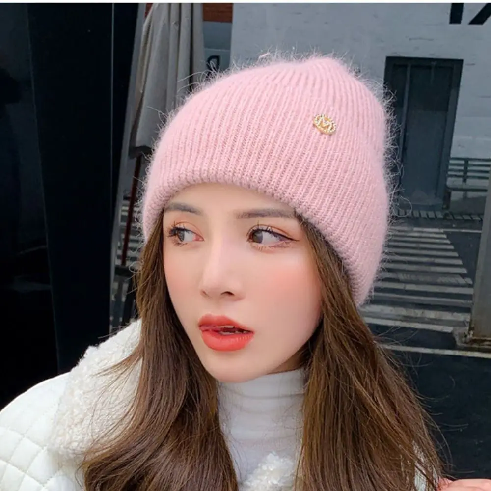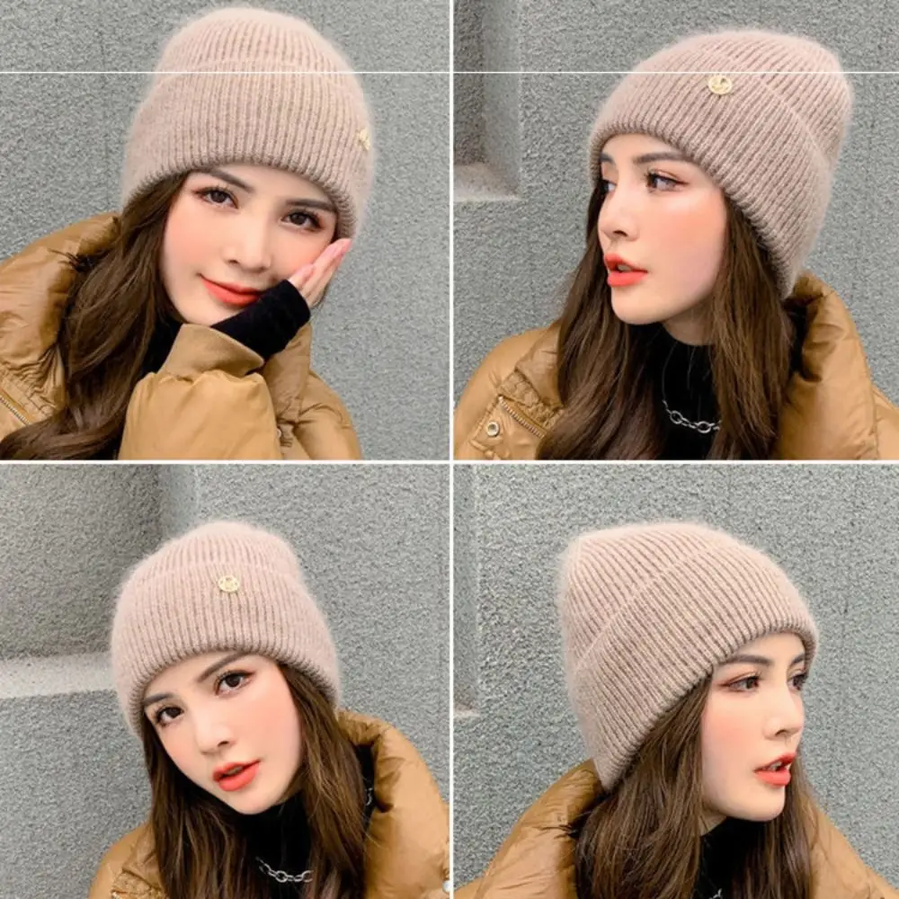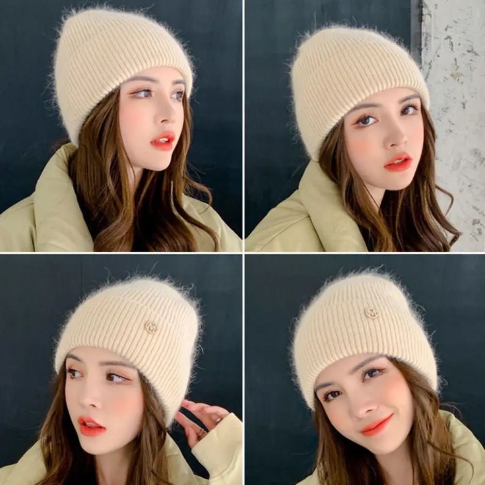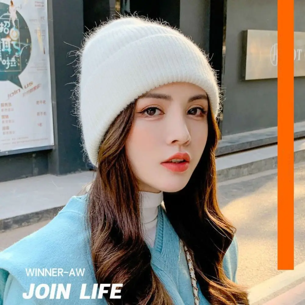 Plush Women Winter Hat Simple Windproof Thickened Warm Rabbit Fur Knitted Hat Pure Color Skullies Beanies