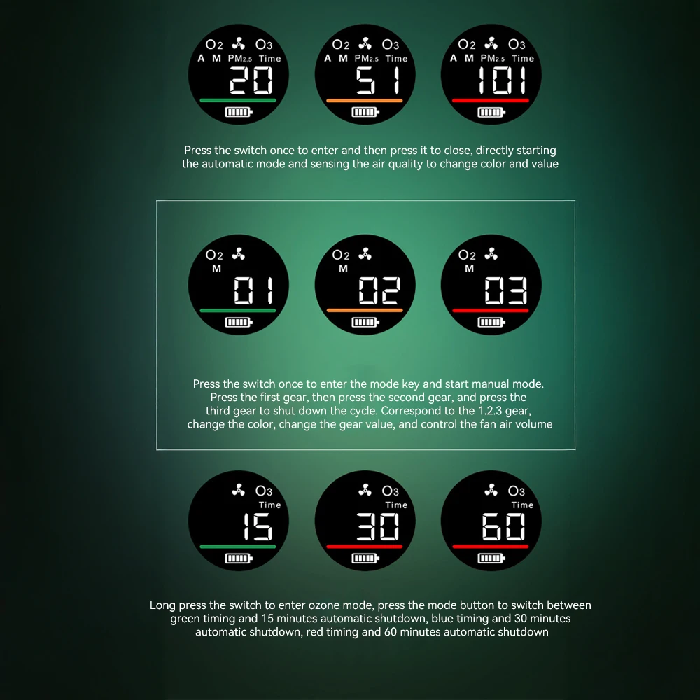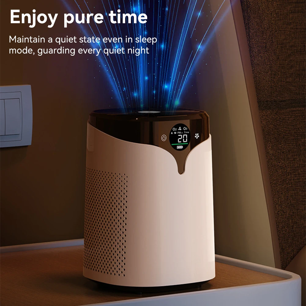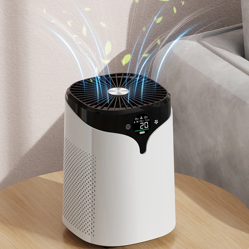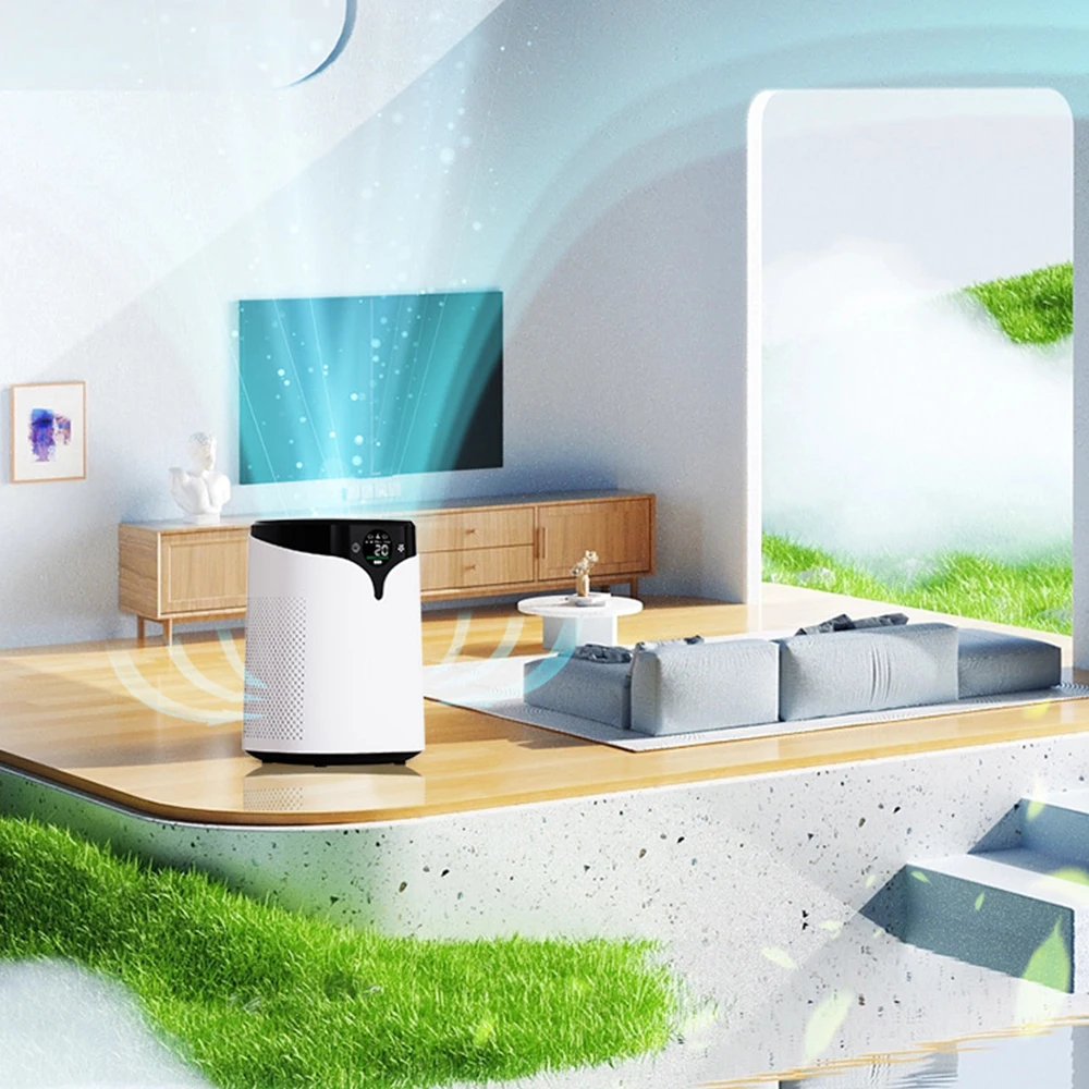 The PM2.5 Air Purifier effectively removes PM2.5 particles, negative ions, pet hair, dust, and smog, ensuring a cleaner, healthier living environment.