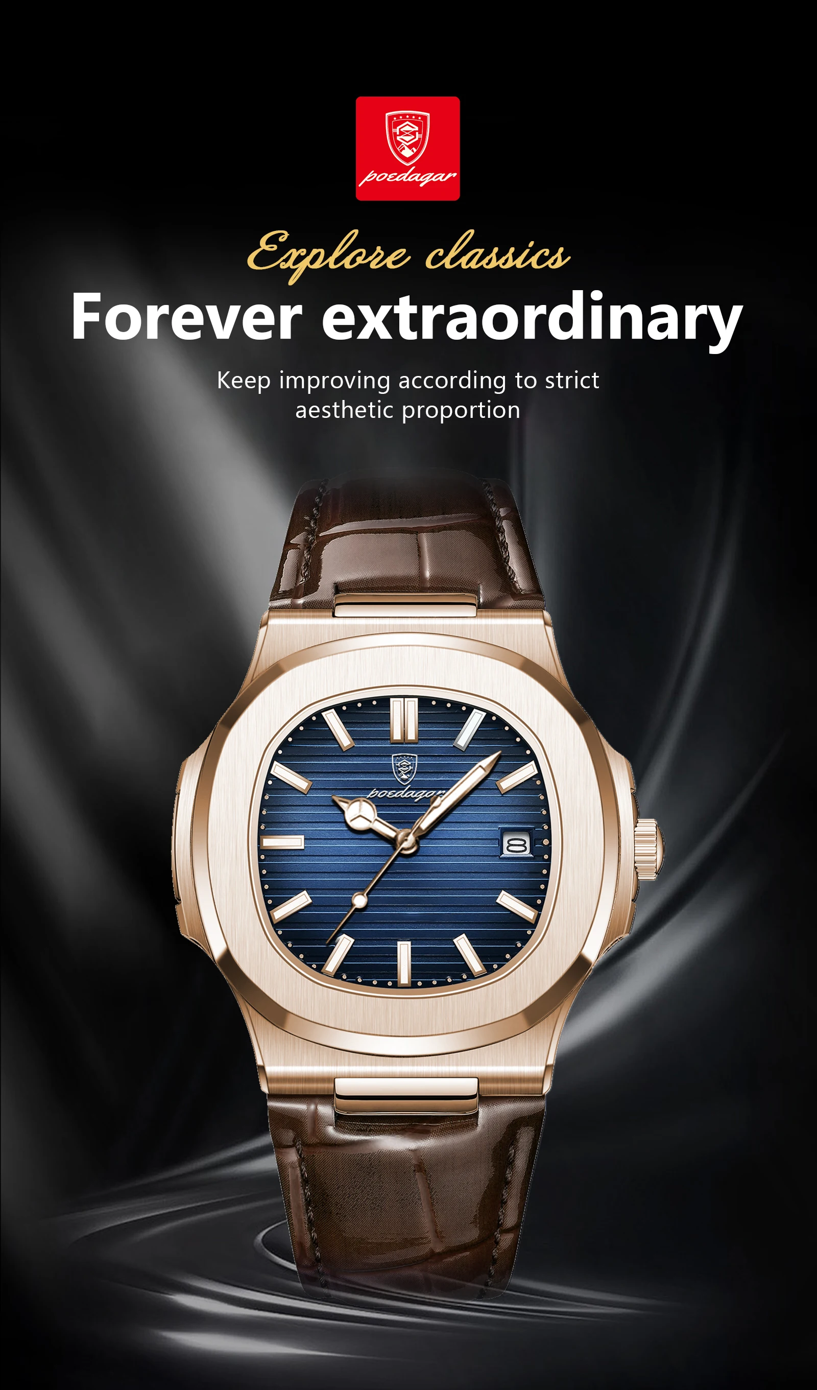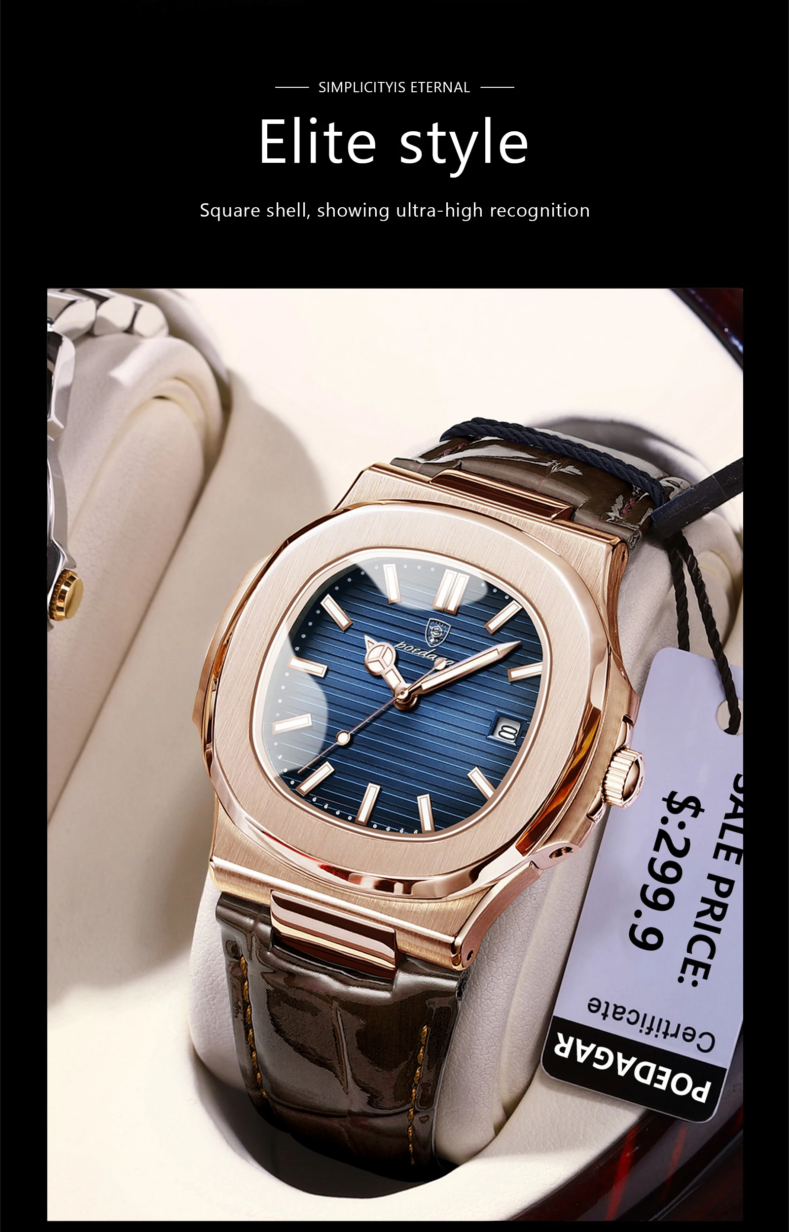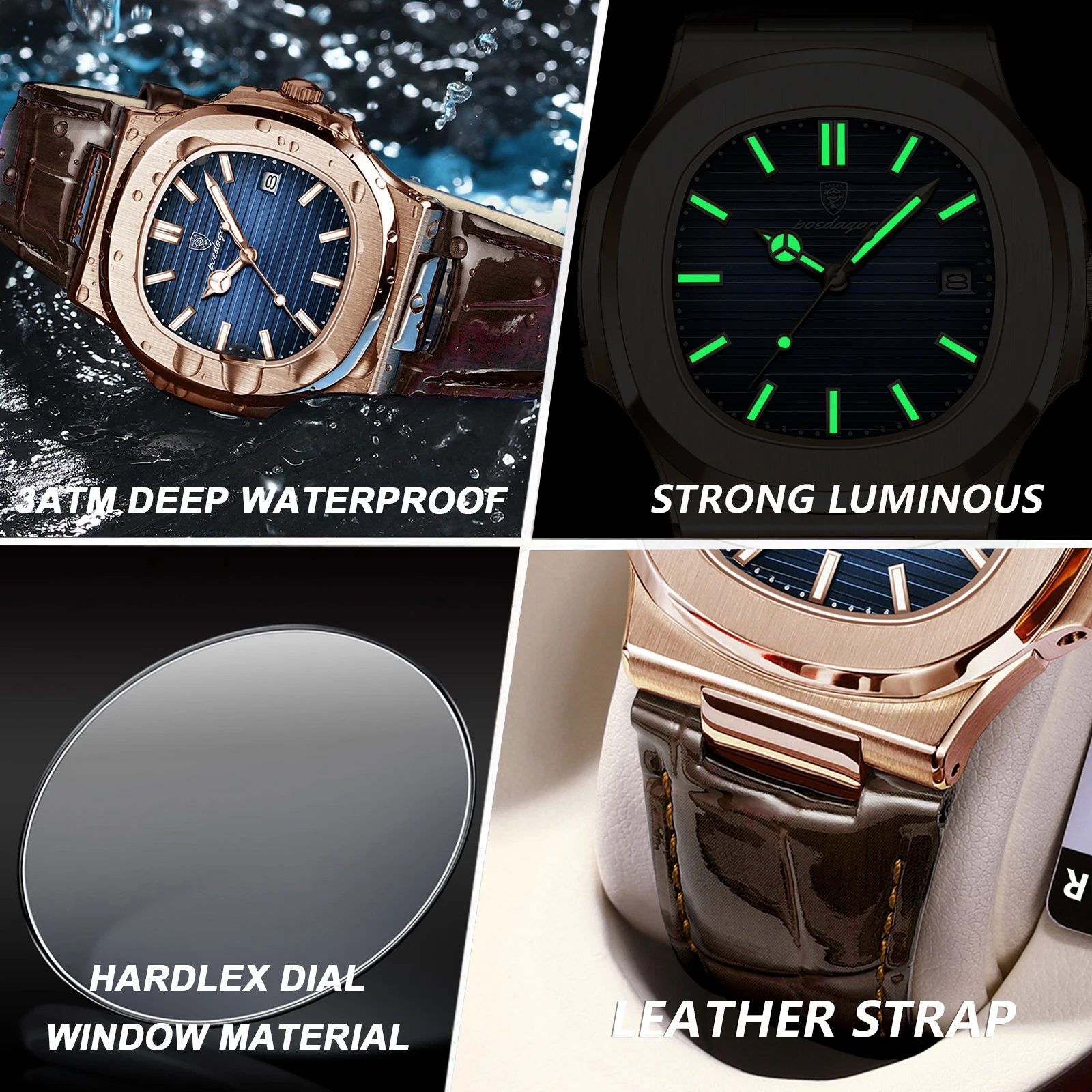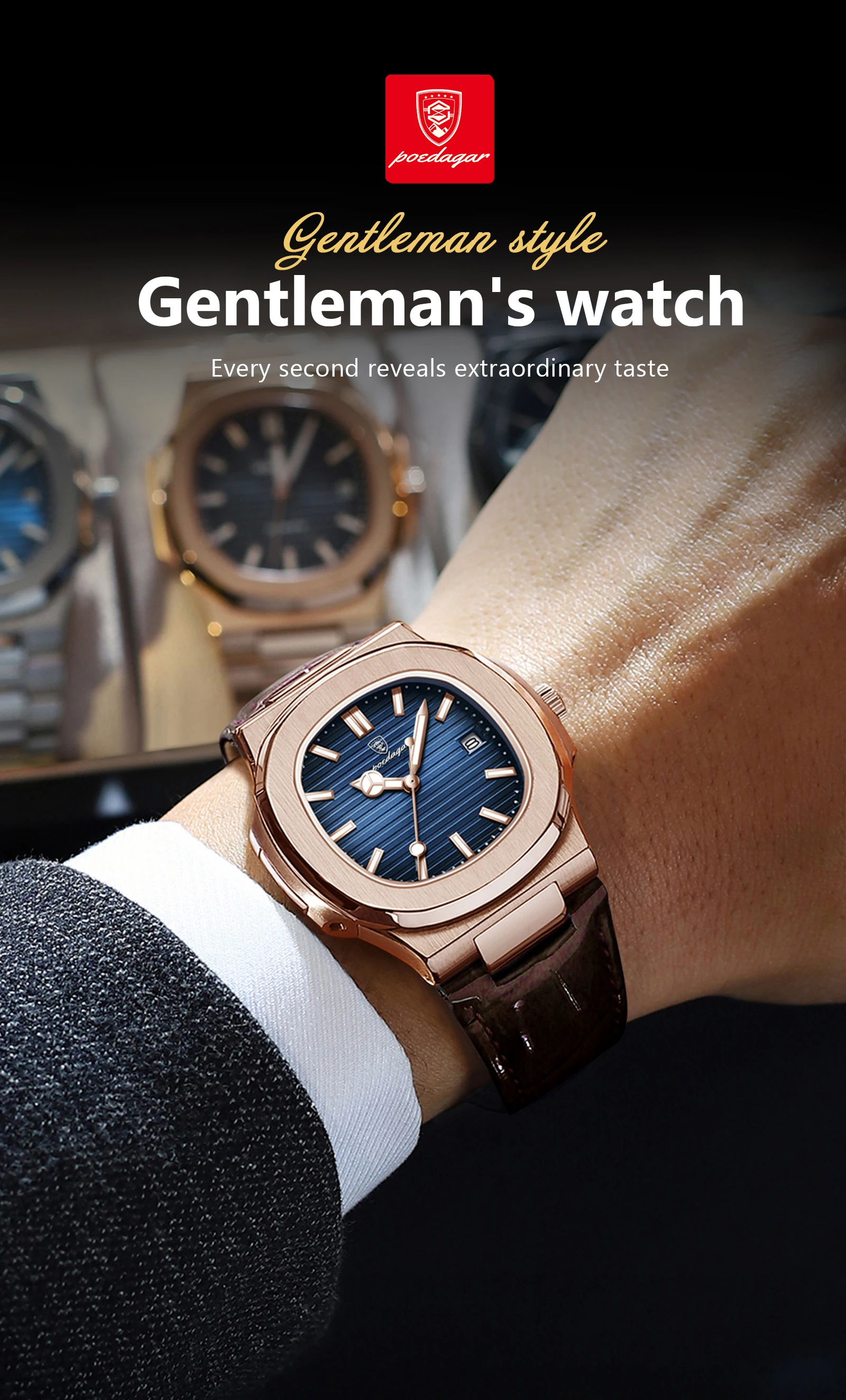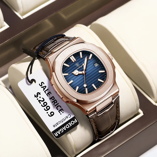 POEDAGAR Fashion Square Man Watch Waterproof Date Luminous Leather Men's Quartz Wristwatch Luxury Sport Business Watches For Men