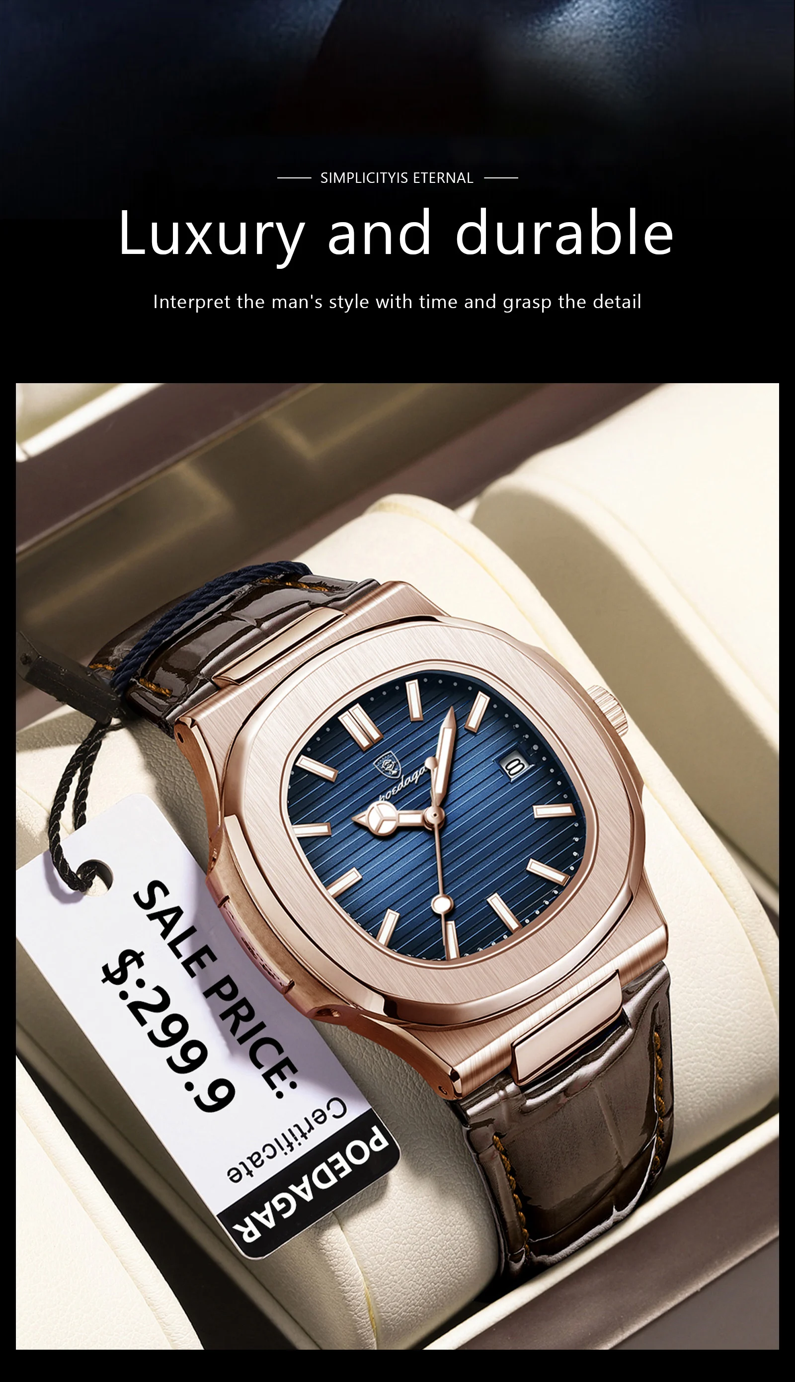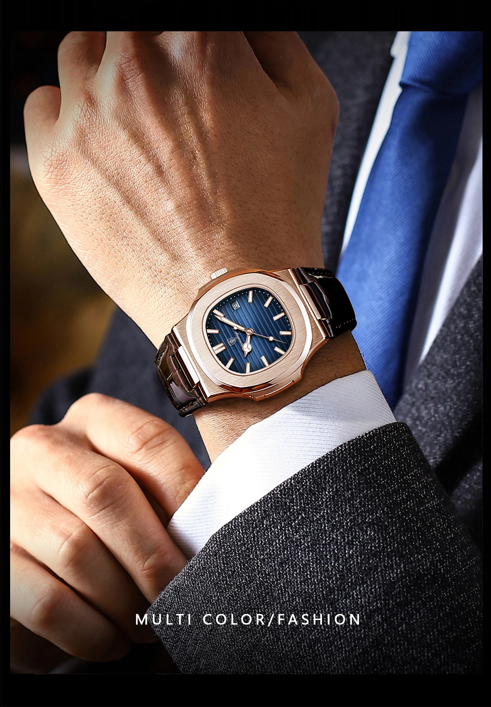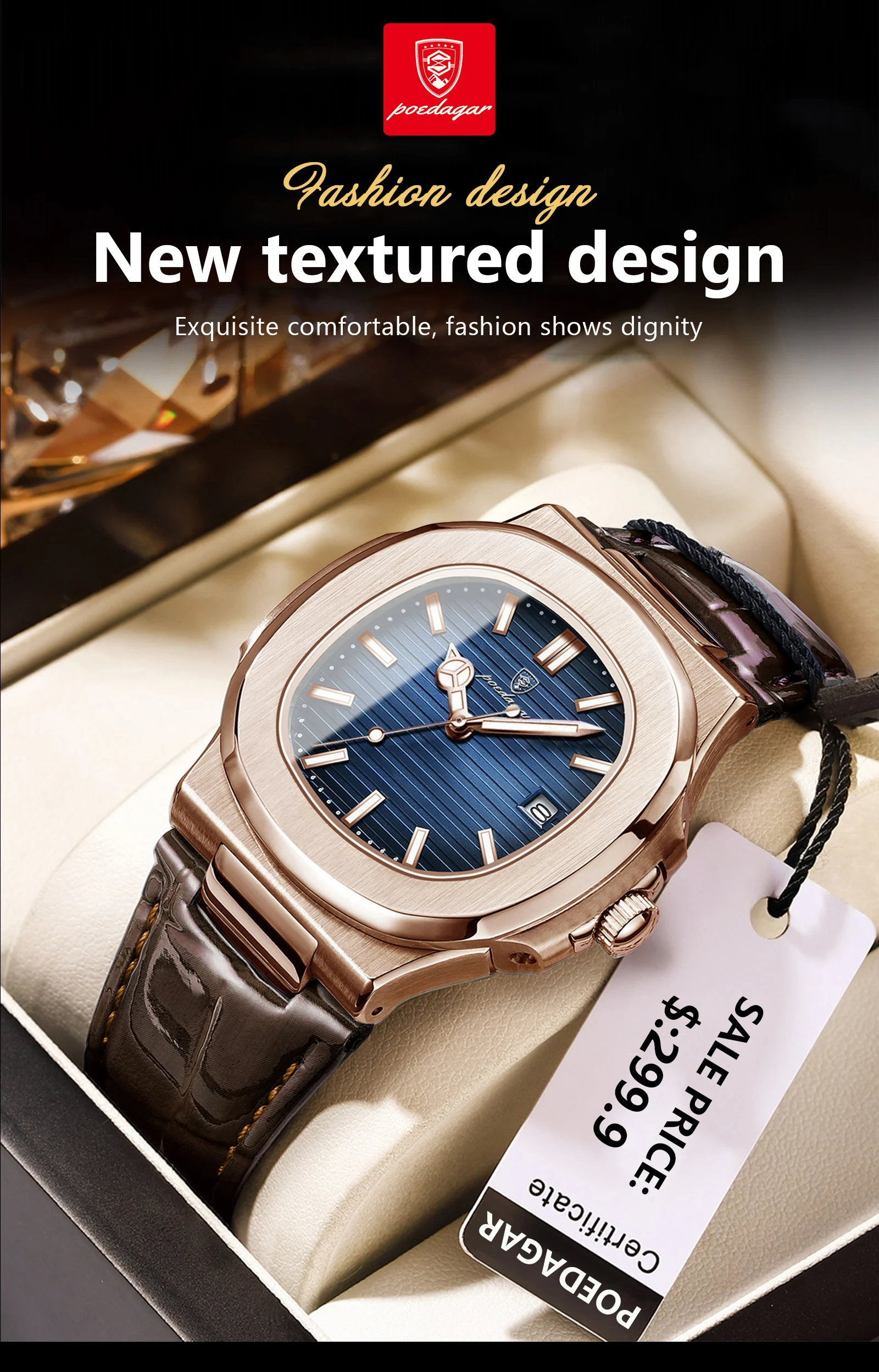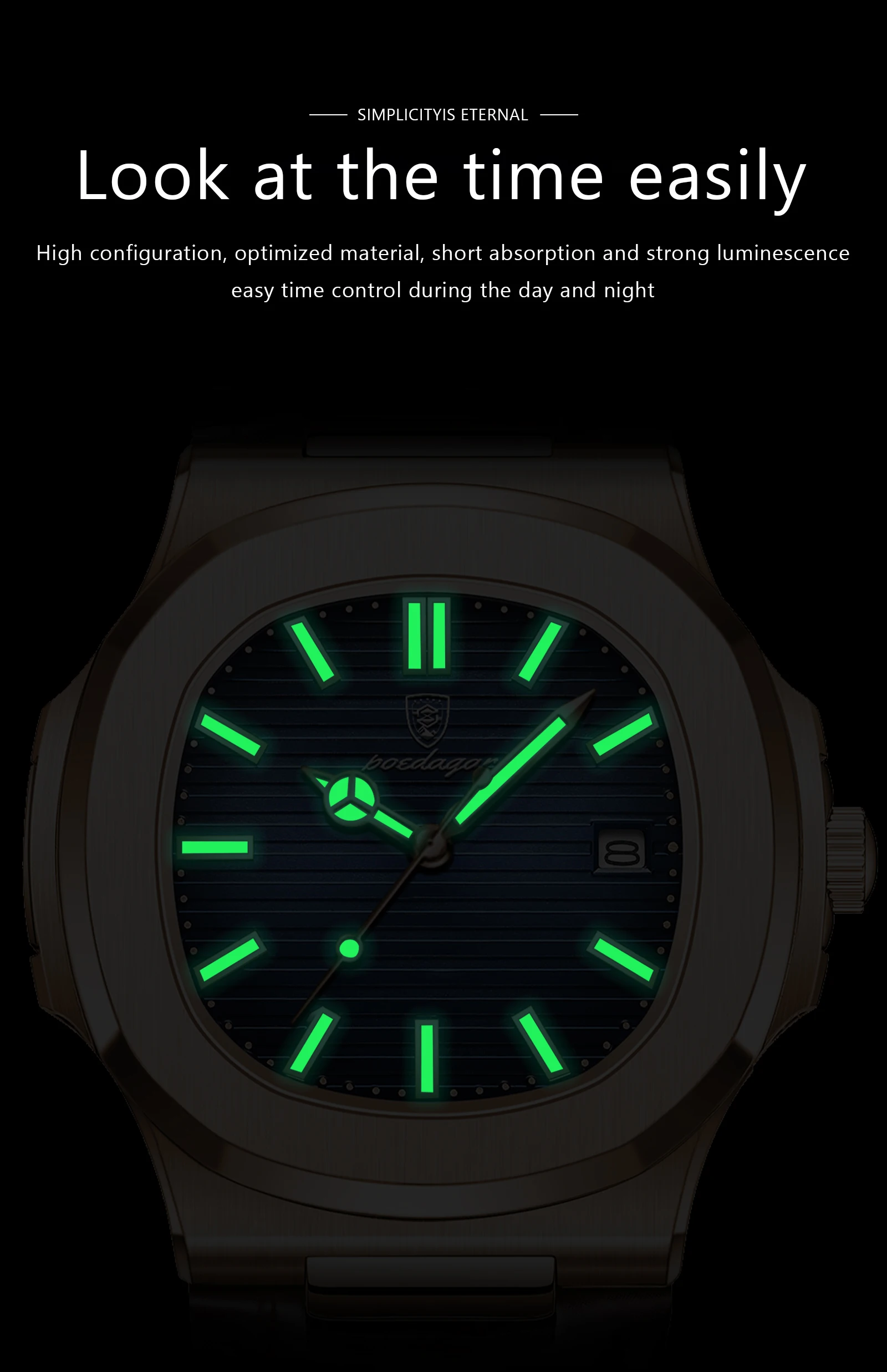 POEDAGAR Fashion Square Man Watch Waterproof Date Luminous Leather Men's Quartz Wristwatch Luxury Sport Business Watches For Men