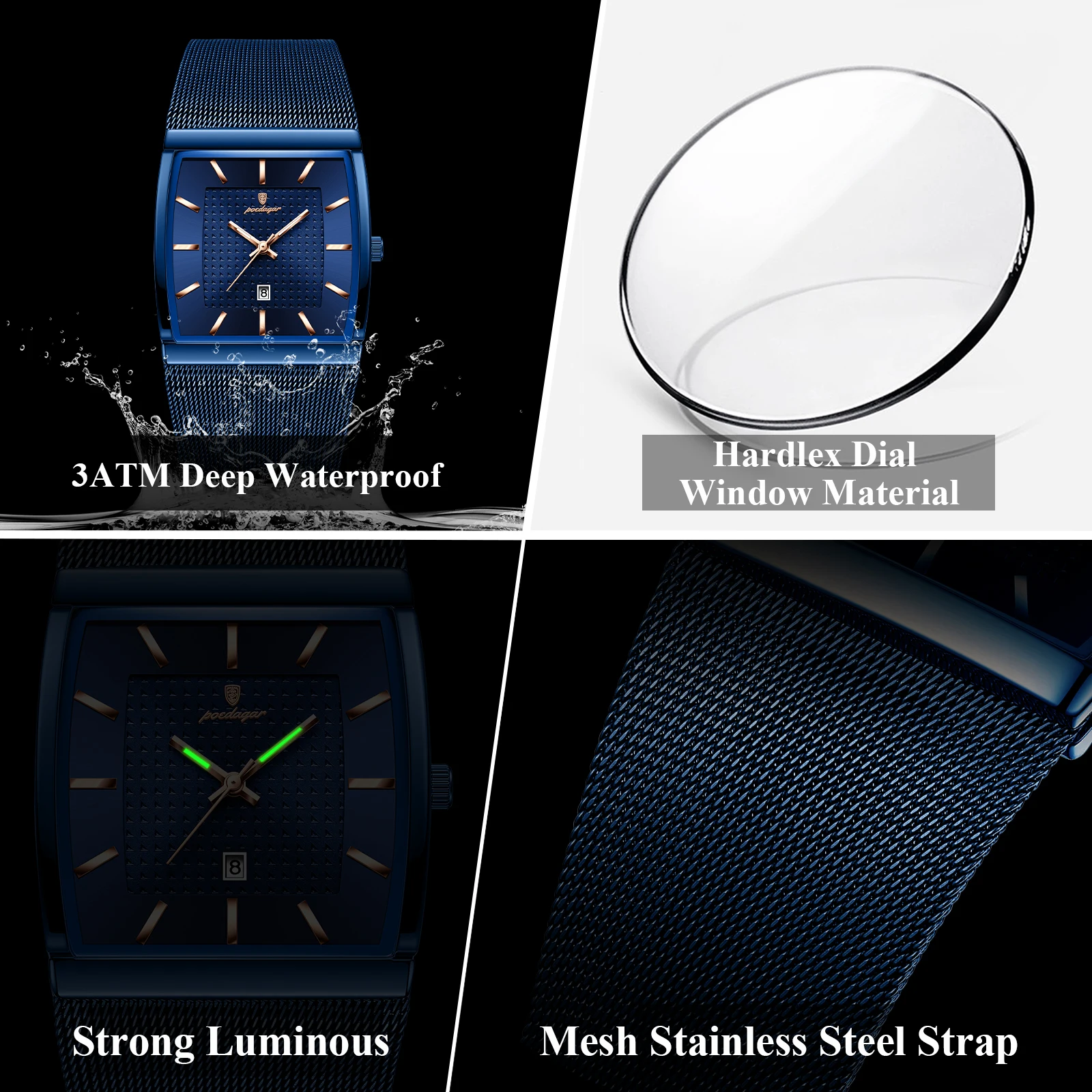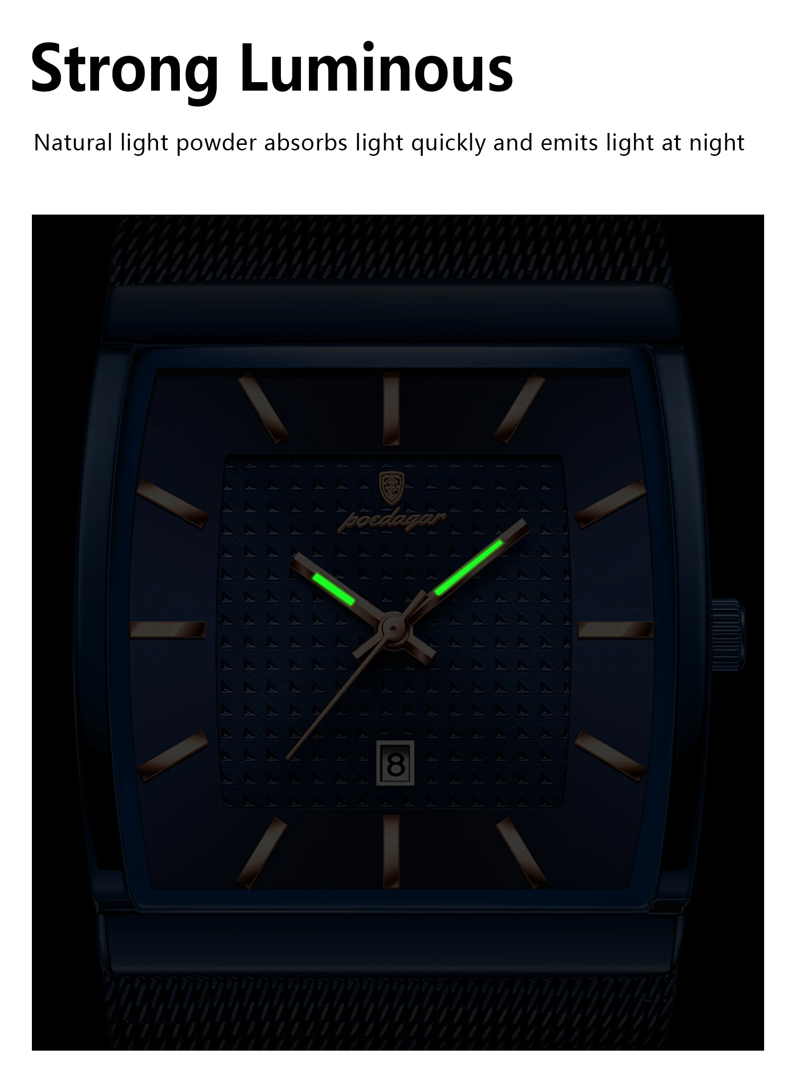POEDAGAR Luxury Casual Men Clock Stainless Steel Mesh Date Waterproof Luminous Man Wristwatch Quartz